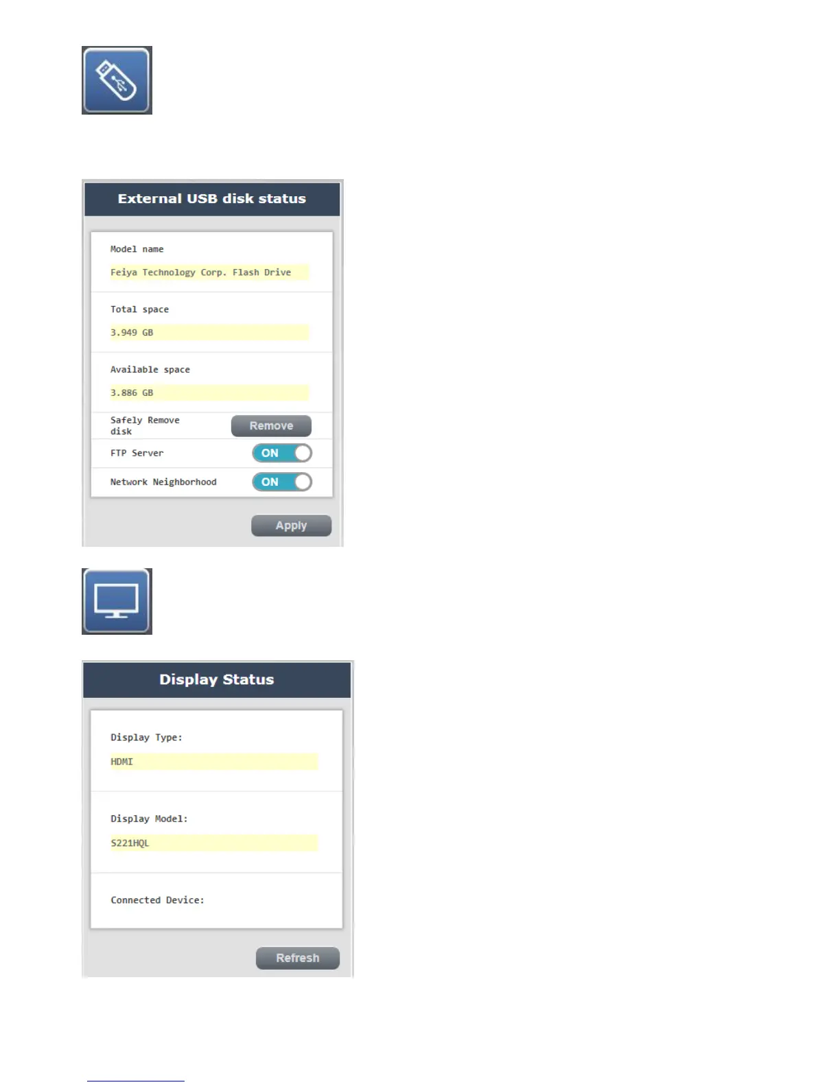 can confirm the status of your current USB drive use, this page allows you to safely remove the USB drive,