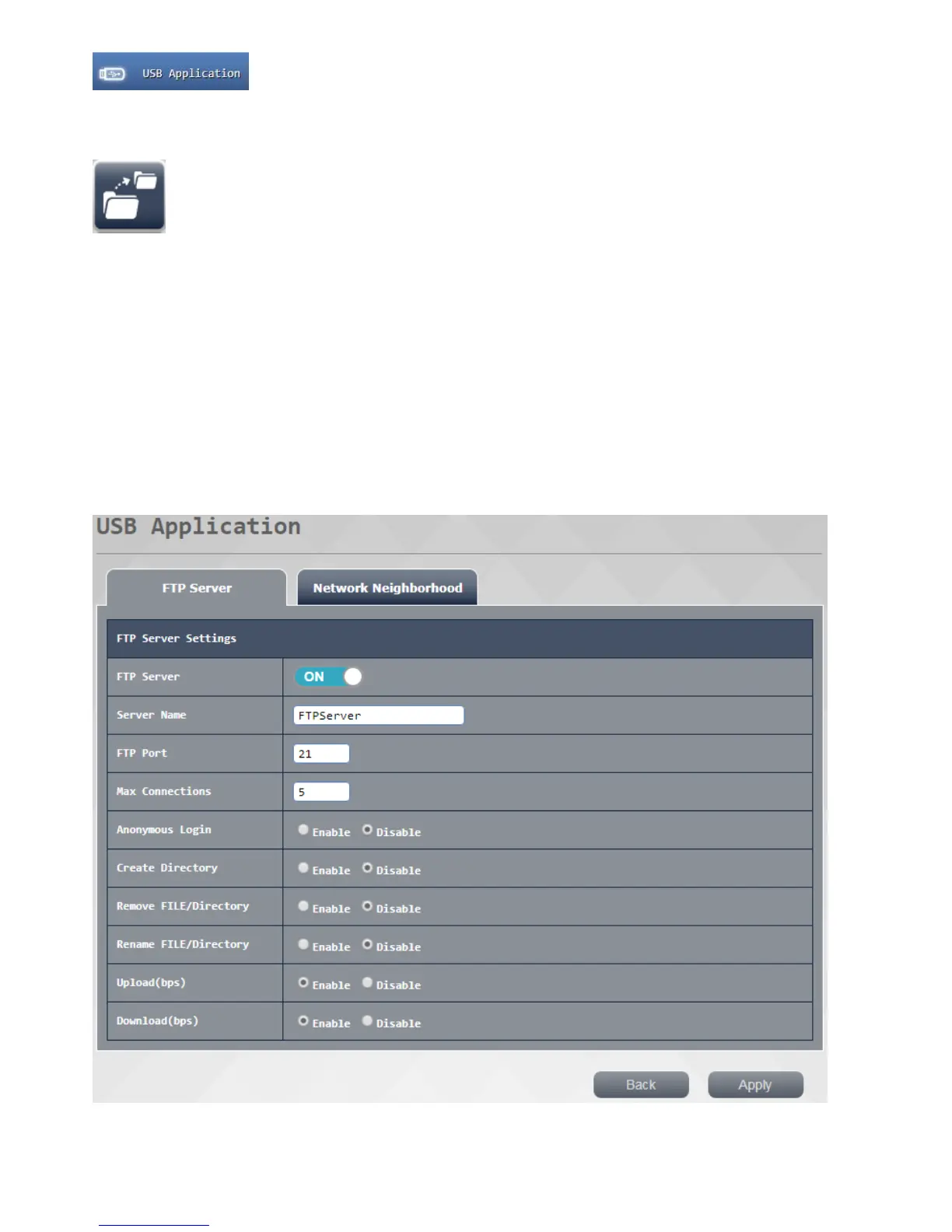 1. File Transfer Protocol (FTP):. This can be set to function to enable or disable