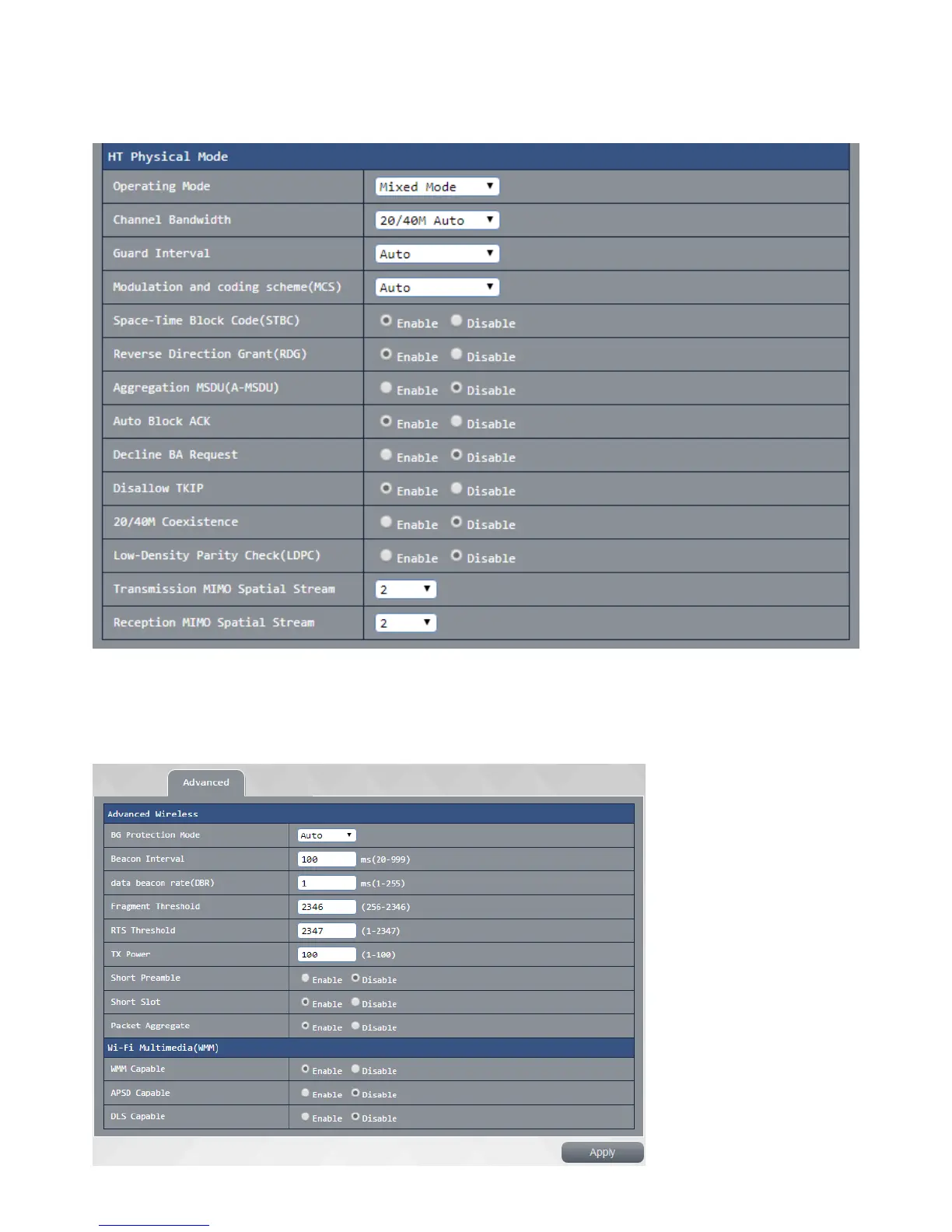 This page is a set 802.11n settings, you can customize the network settings of the router 802.11n value, if
