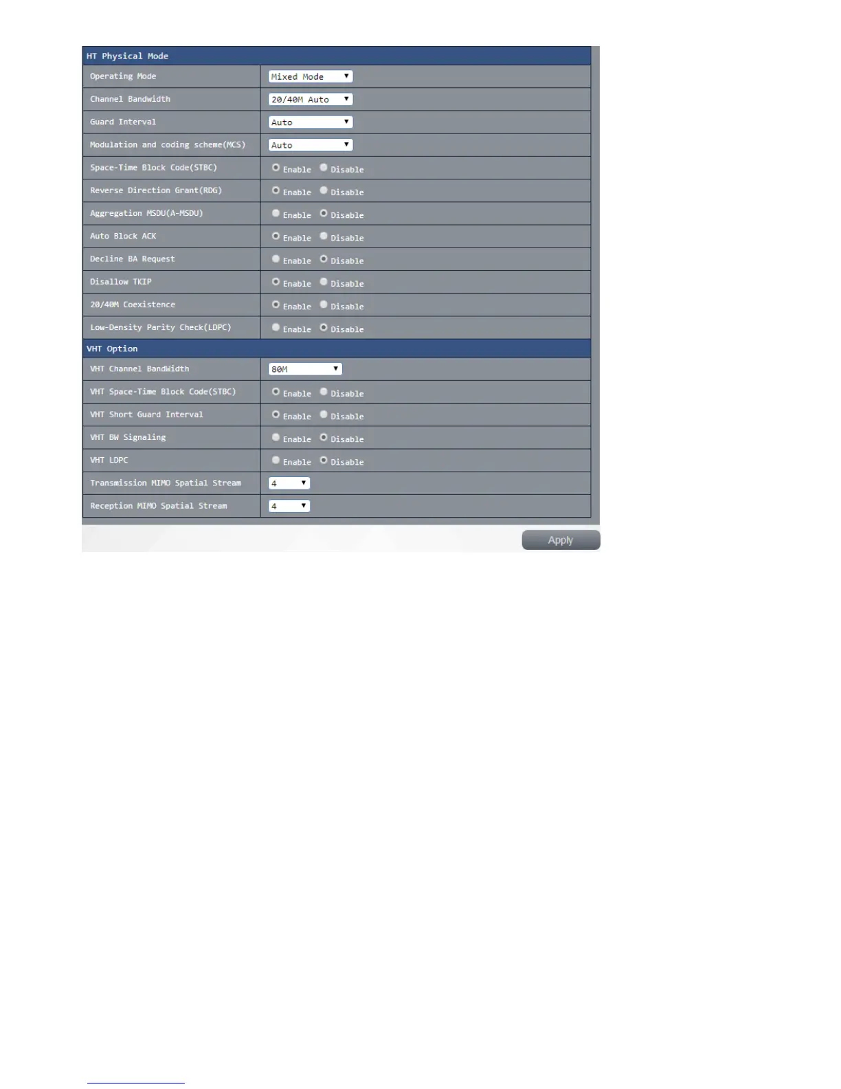 individually, if no special requirement recommend this setting to keep the system defaults press Apply after