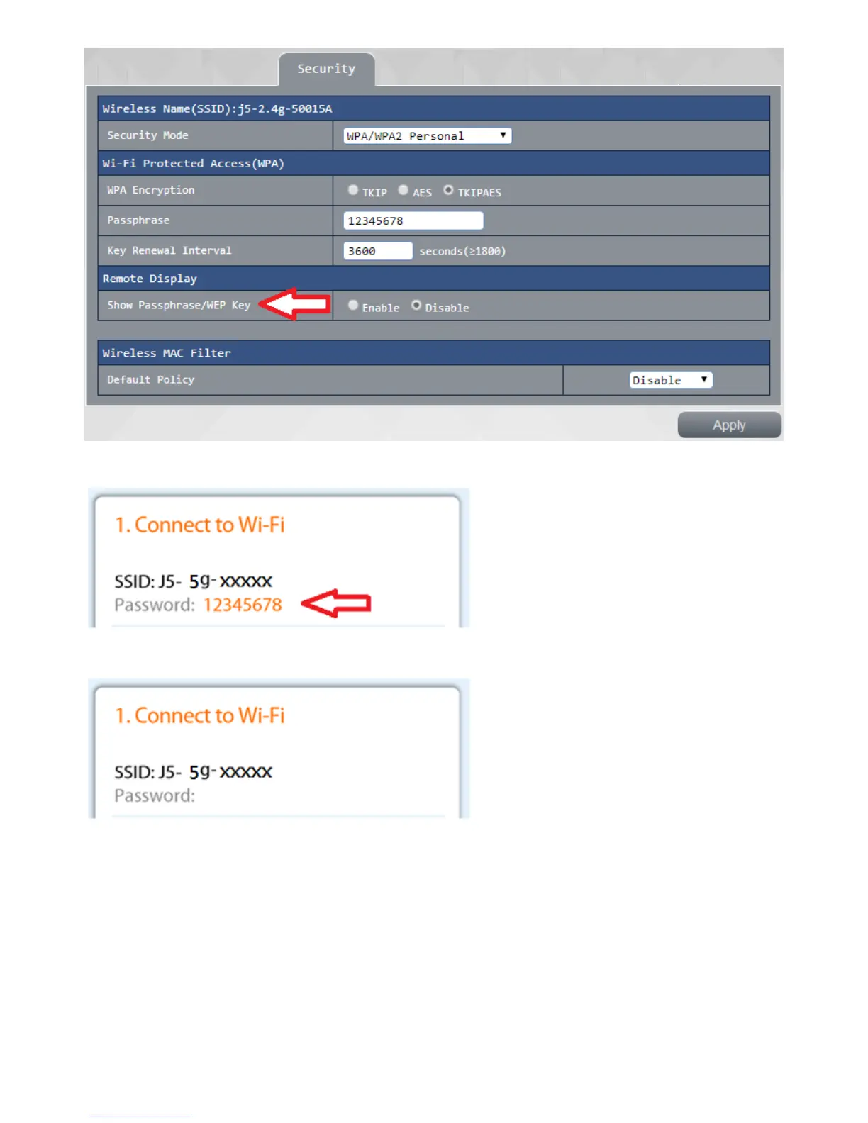 authentication password enables the display / WEP key, on the output screen see the SSID a schematic