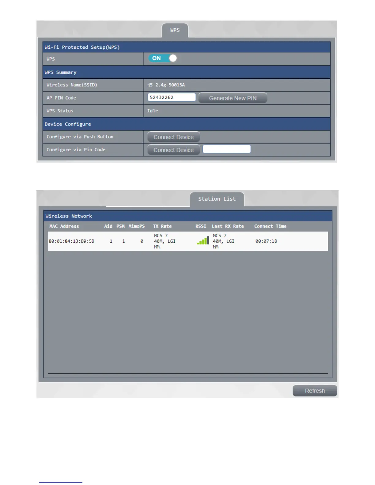 this page shows the current connected to the router the user usage statistics