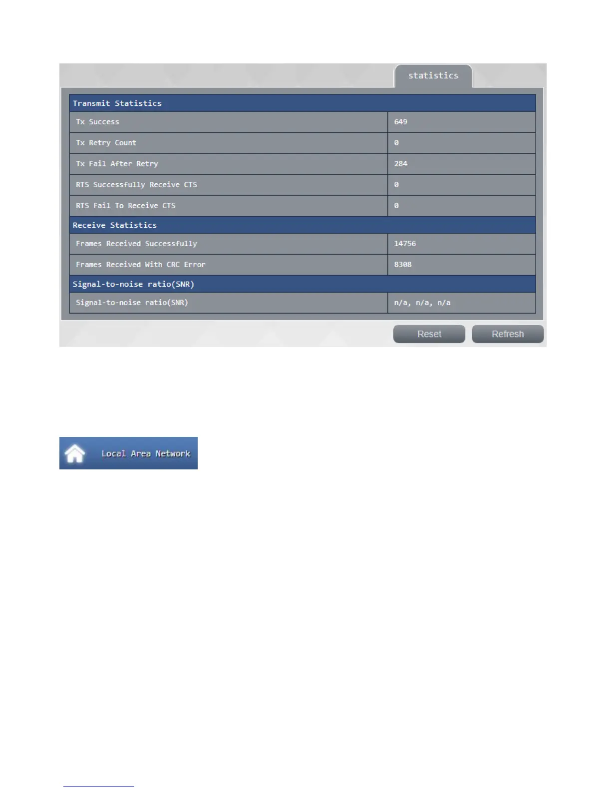 confirm this page to your current Wi-Fi packet transmission status, you can press <reset> to zero or press