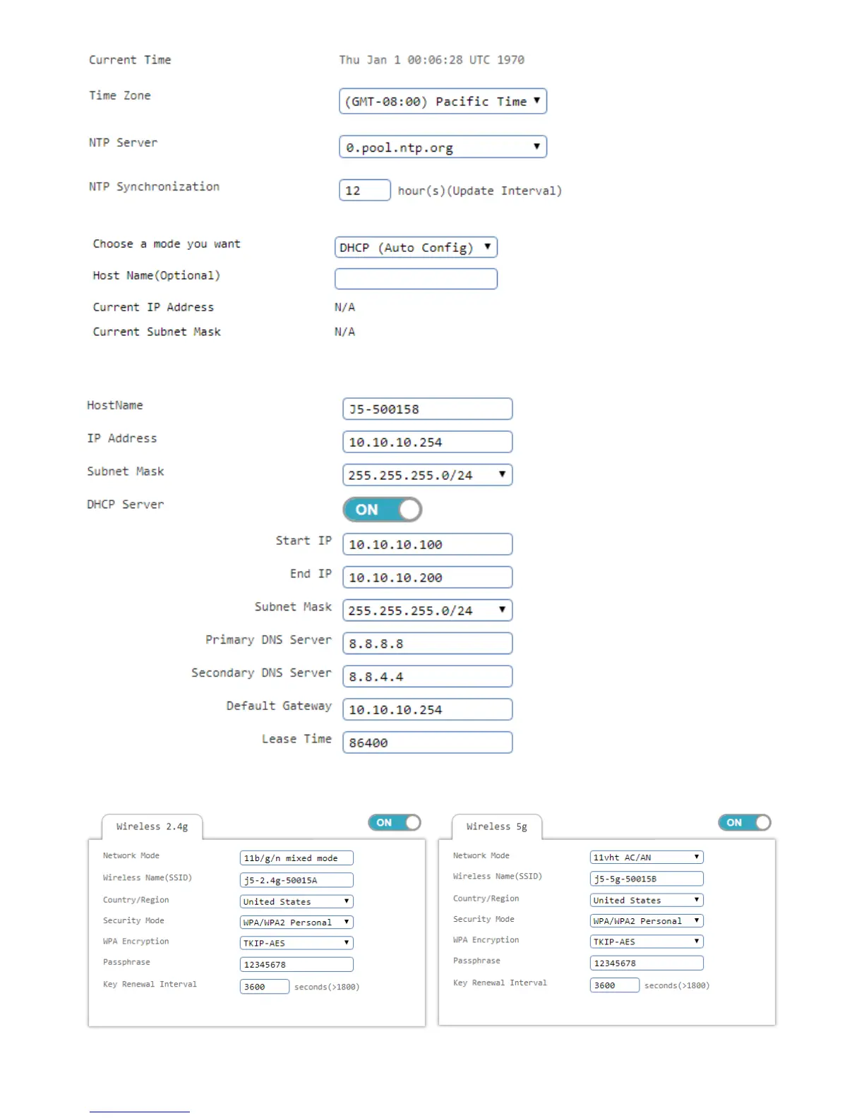 6. Internal network settings, according to personal needs adjustment, it is recommended to use the default