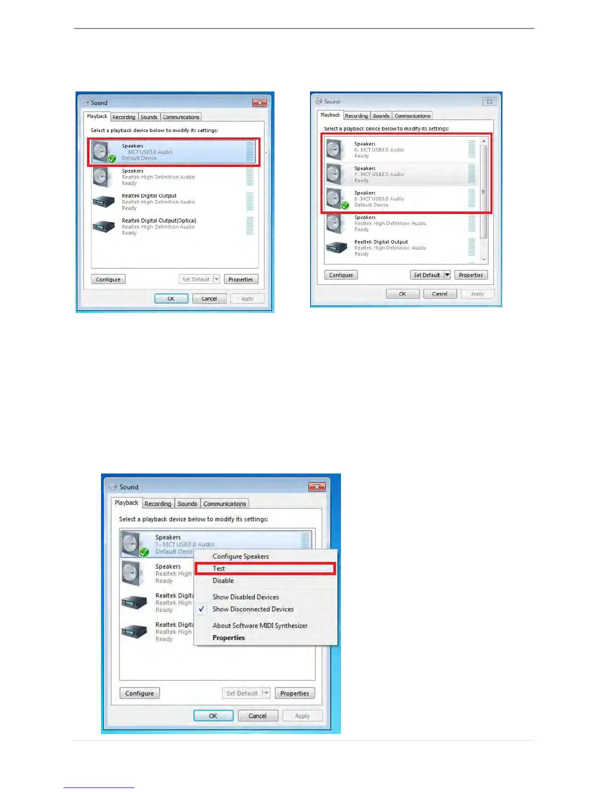 2. The speaker options , for single and Multi- USB 3.0 HDMI Display Adapters, are