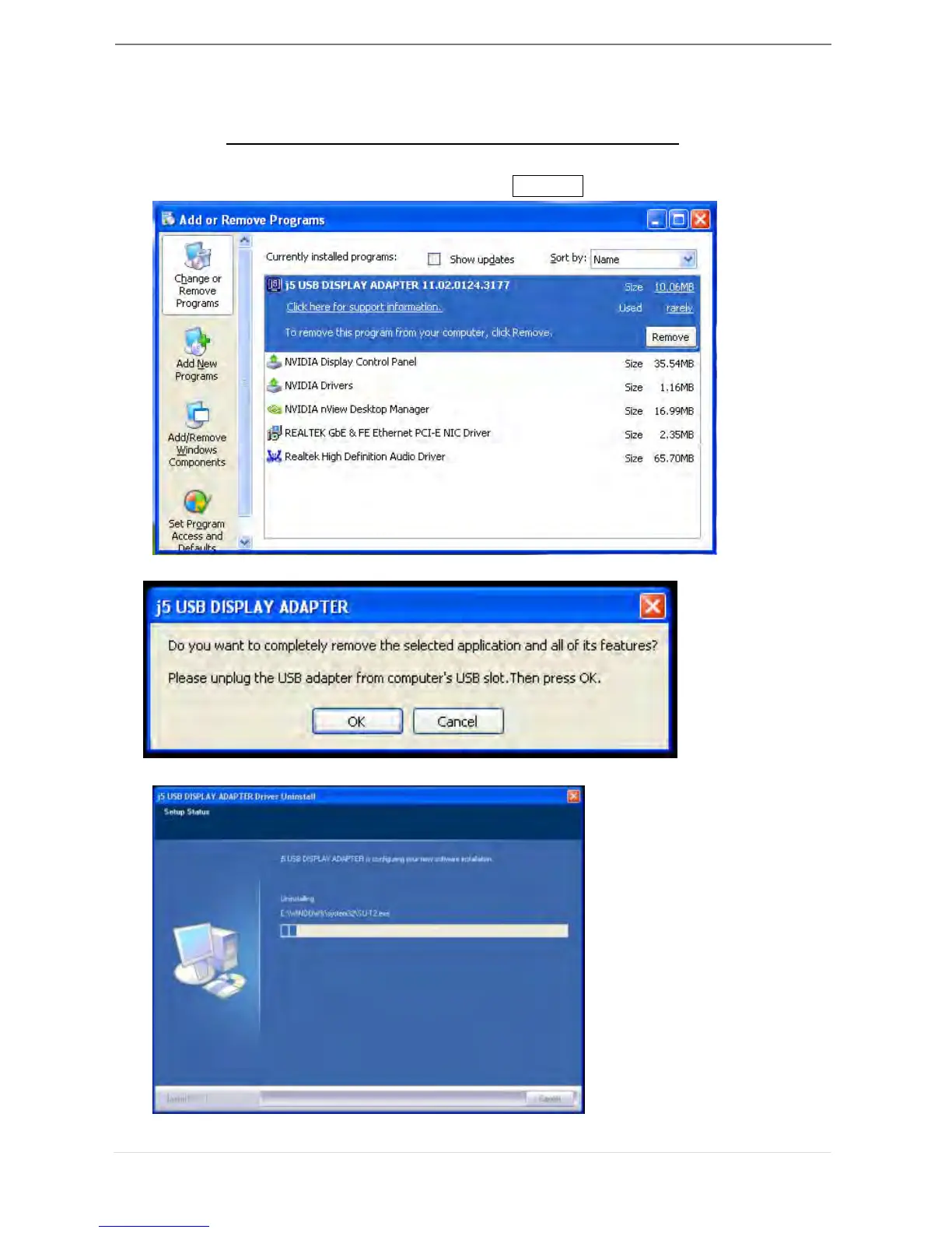 program Select j5 DISPLAY ADAPTER... Click Uninstall