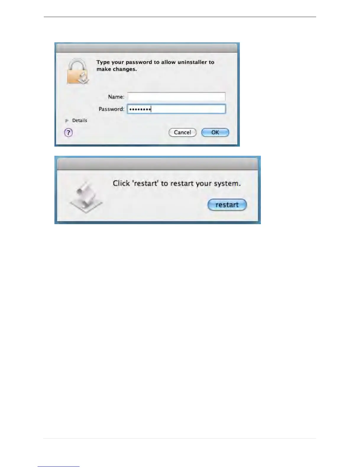 5. Type in your password to allow un-installation and click “OK” to