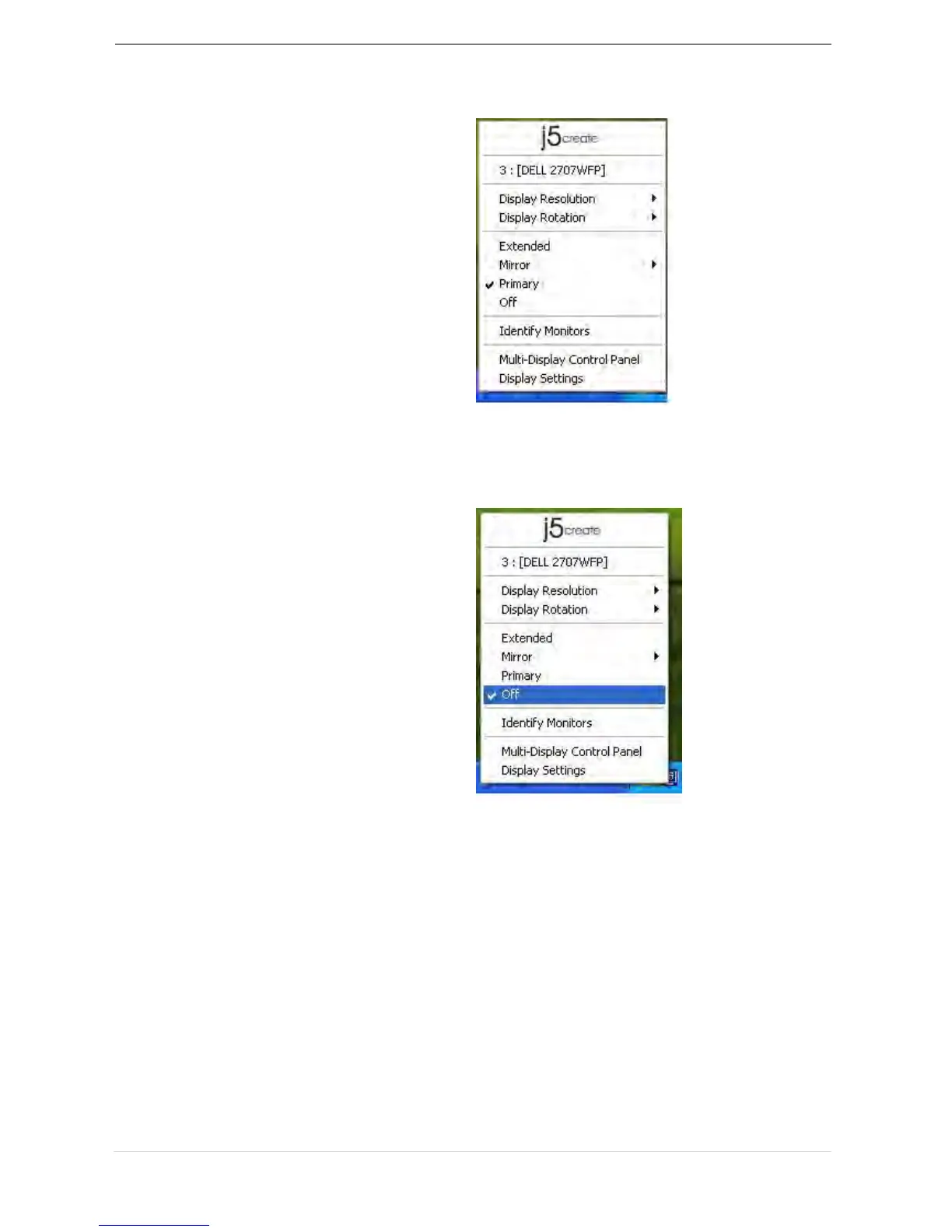 When Primary is selected, the display