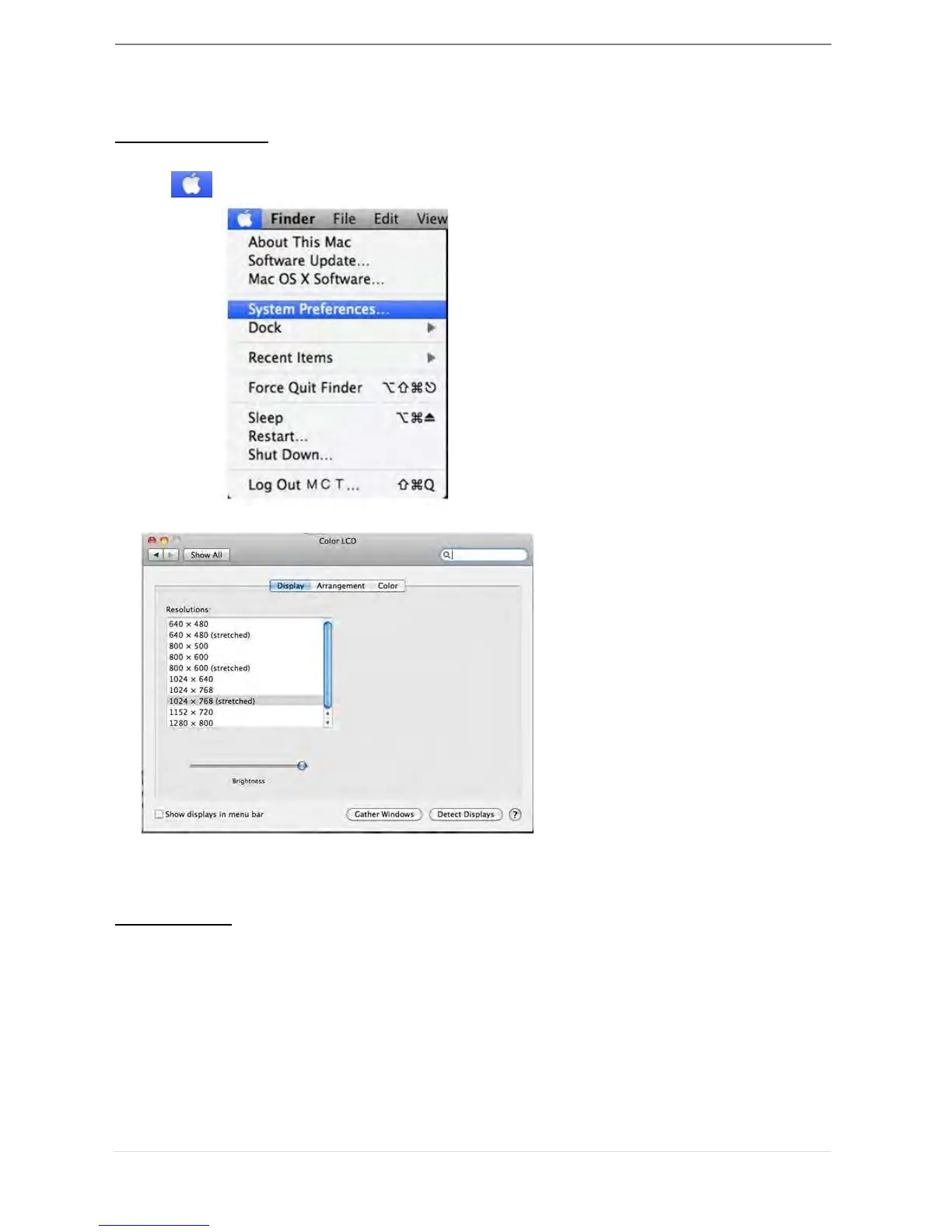 From “System Preferences” click on the “Display” tab. You should see this screen.