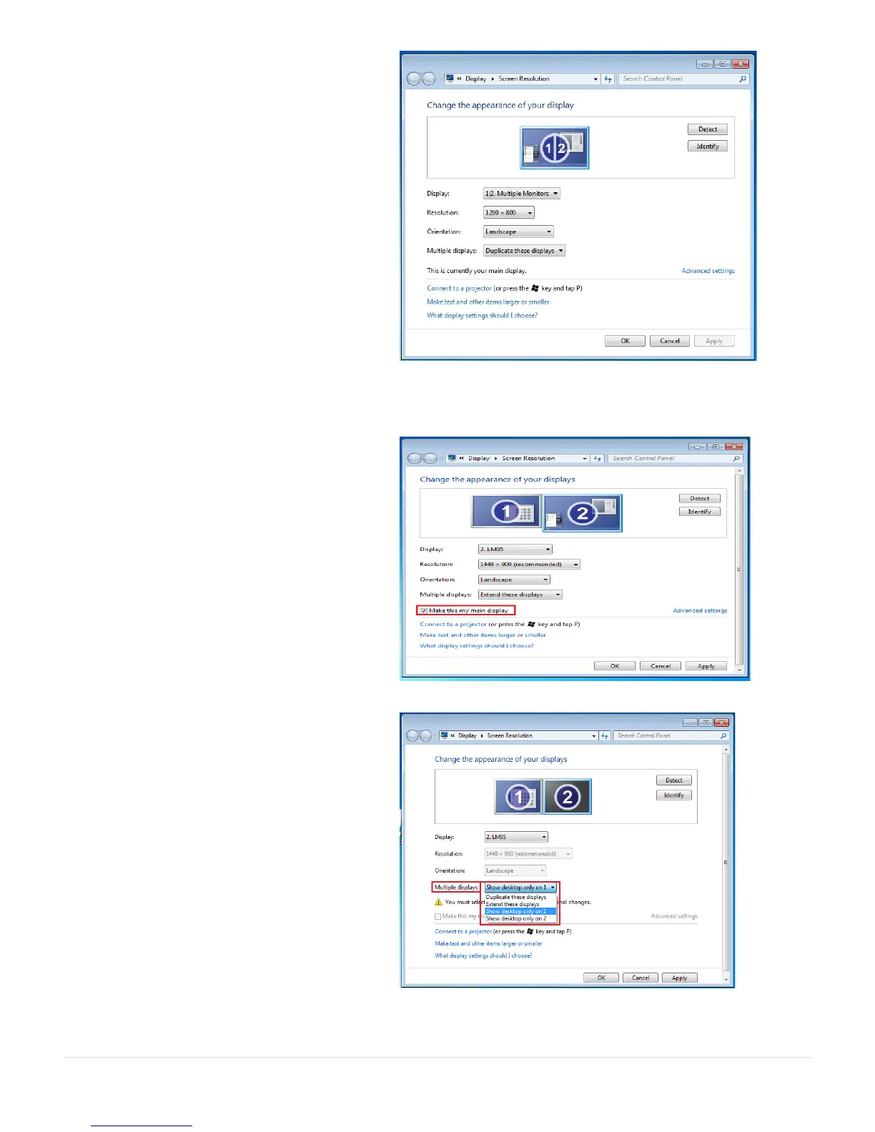 Select Show desktop only on 1 and the