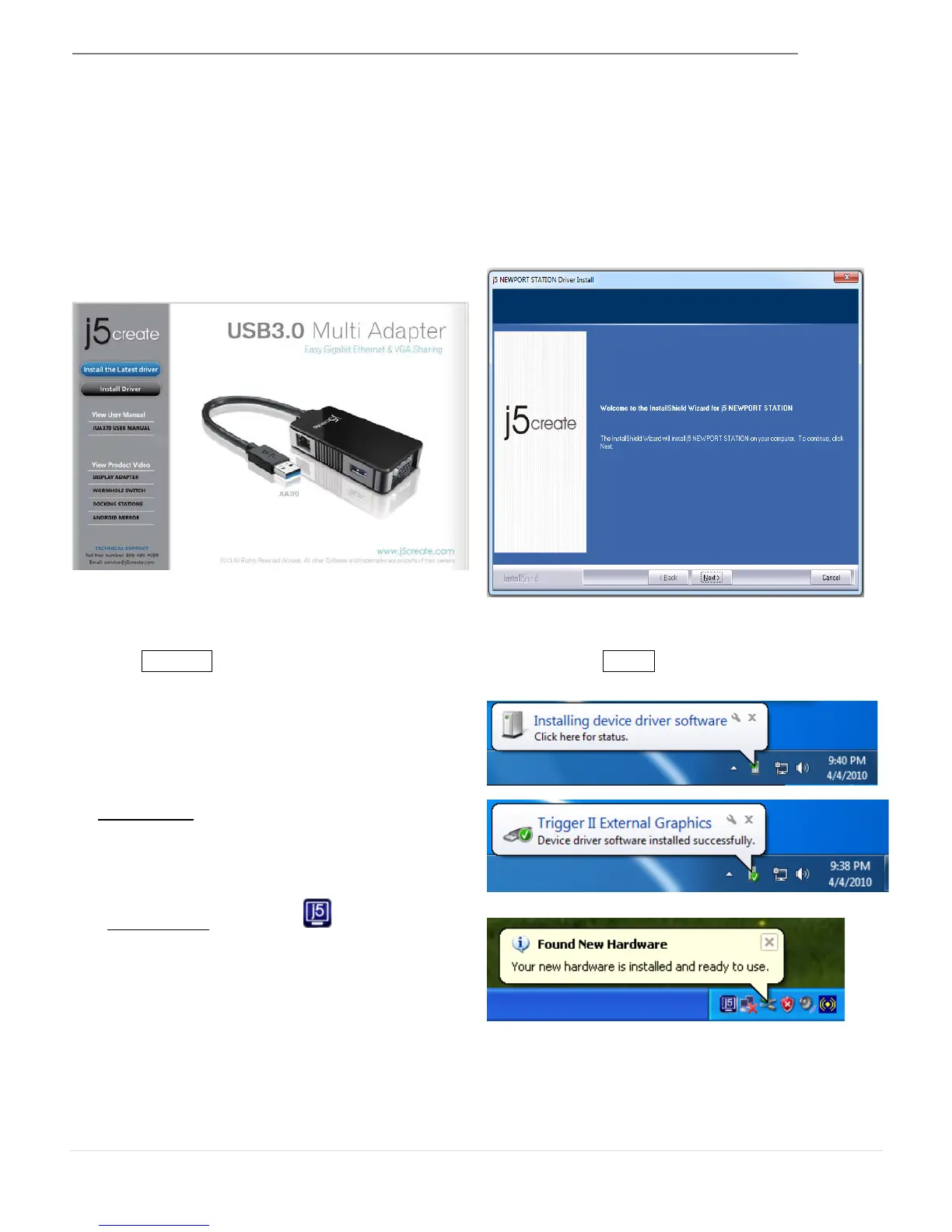 The display functions of the USB3.0 Multi-Adapter will be activated after the computer has
