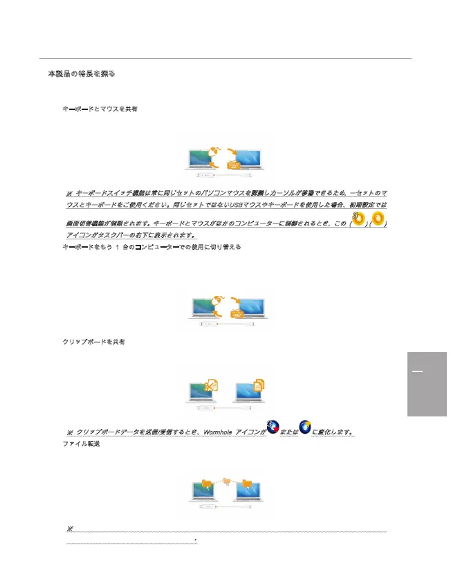 画面切替機能が制限されます。キーボードとマウスがほかのコンピューターに制御されるとき、この ( ) ( )
