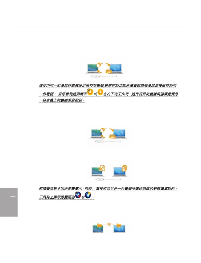 請使用同一組滑鼠與鍵盤設定來控制電腦,鍵盤控制功能永遠會跟隨著滑鼠游標來控制同