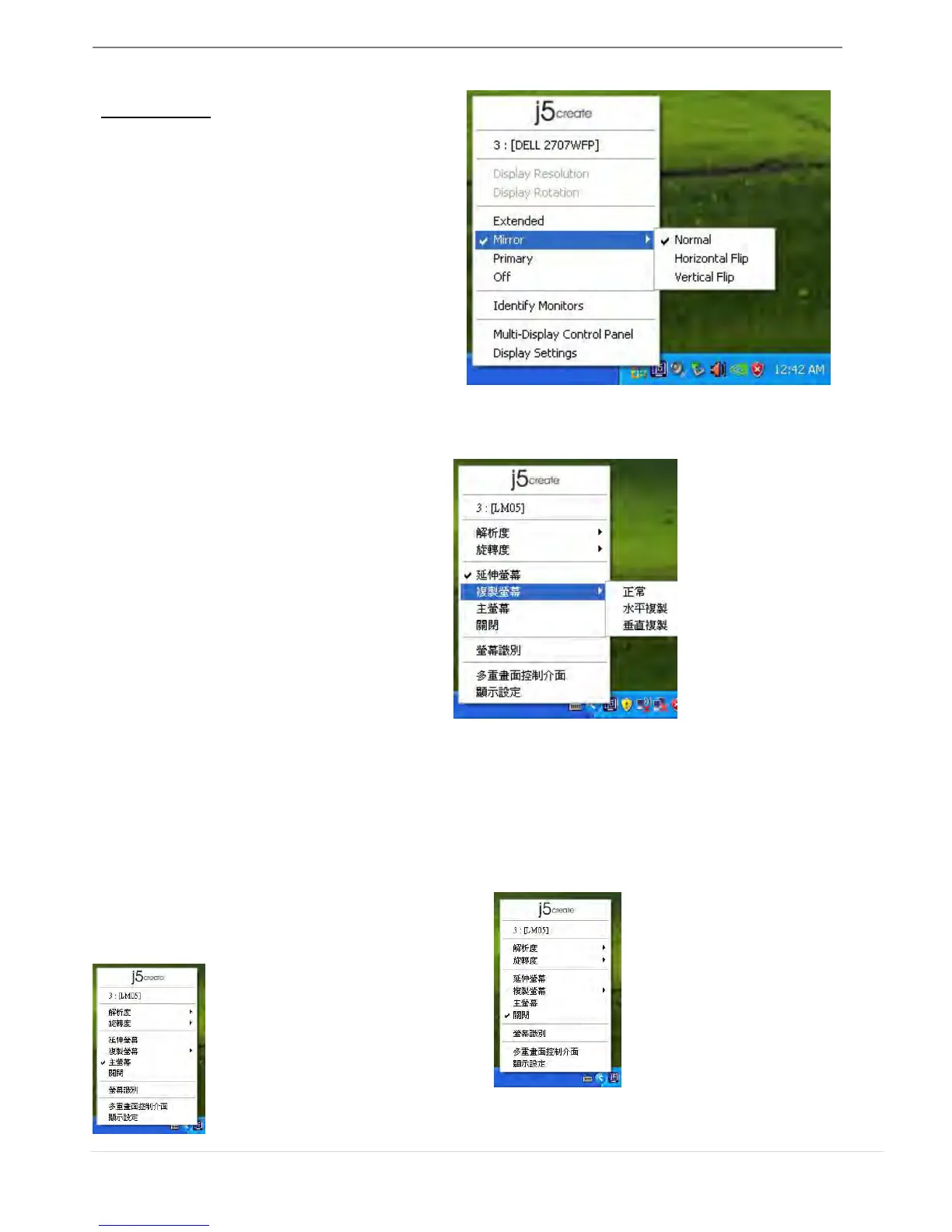 選擇Mirror (複製螢幕模式)時,