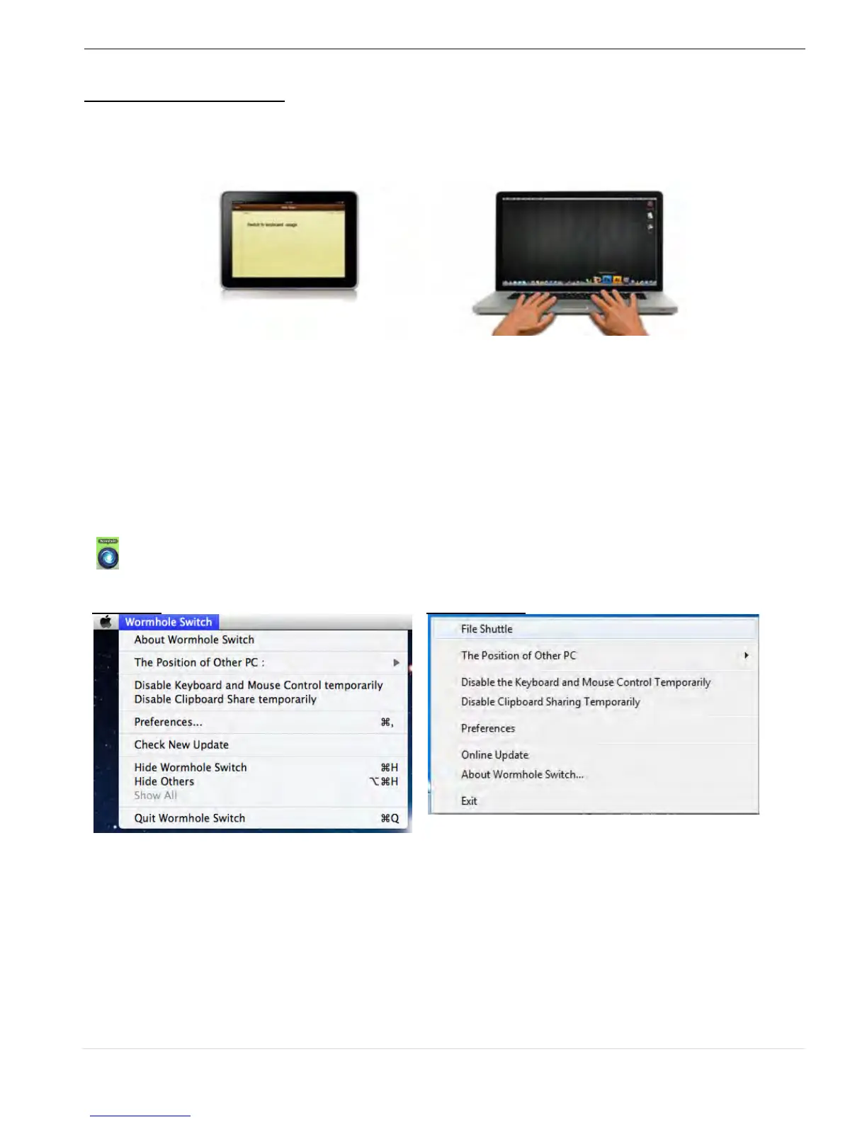 an iPad via the Wormhole Switch and switch the PC’s keyboard to work on the iPad.