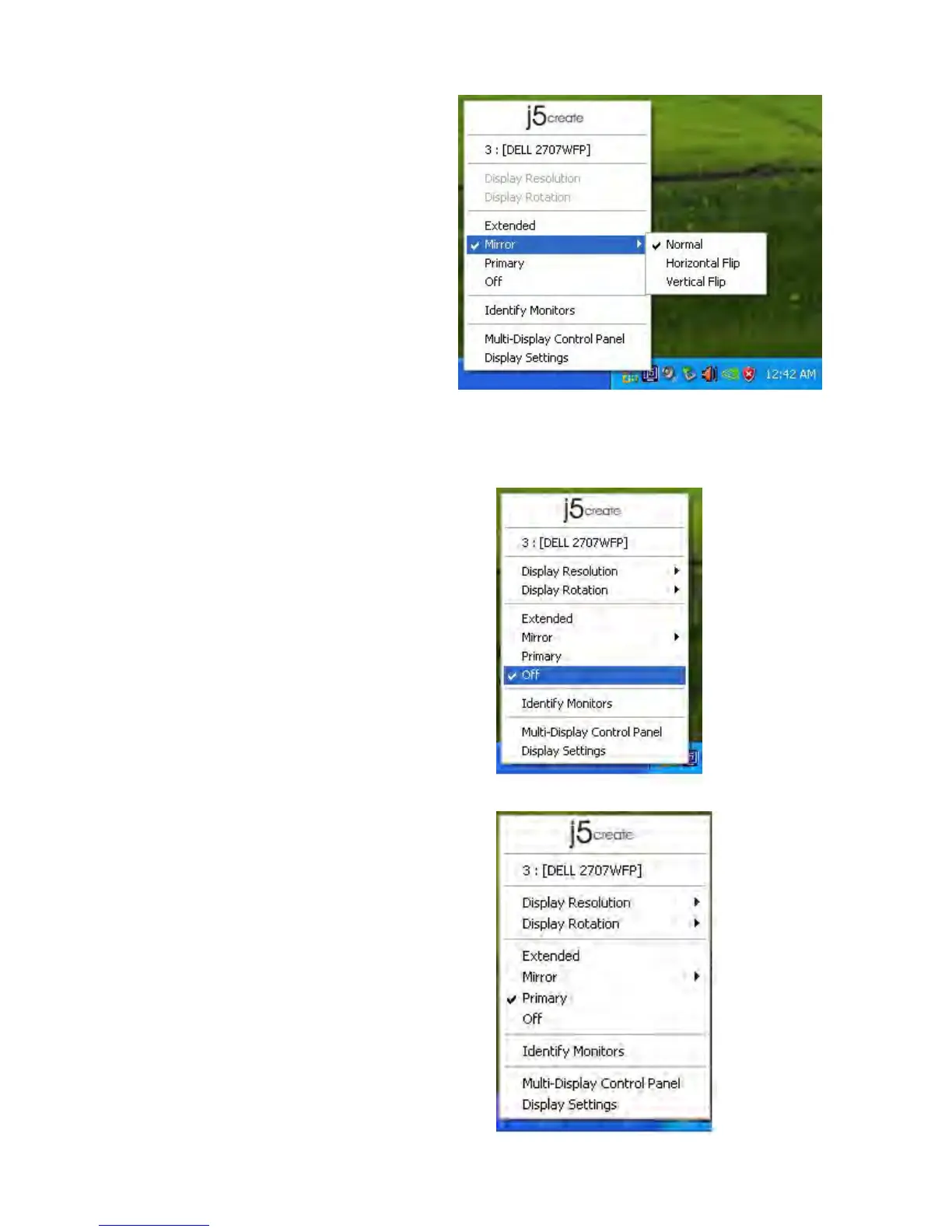 Lorsque Miroir est sélectionné, l'é cran