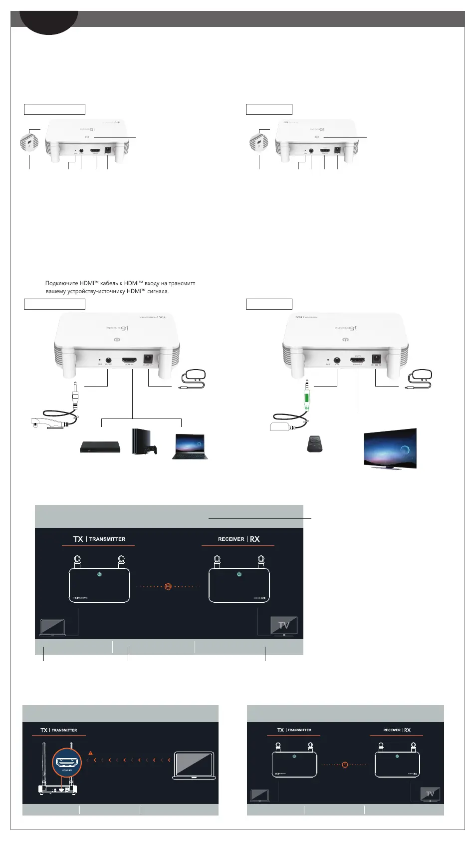 *① Если соединение не удалось, вы можете уменьшить расстояние между TX и RX. Если проблема осталась, обратитесь в службу поддержки j5create.