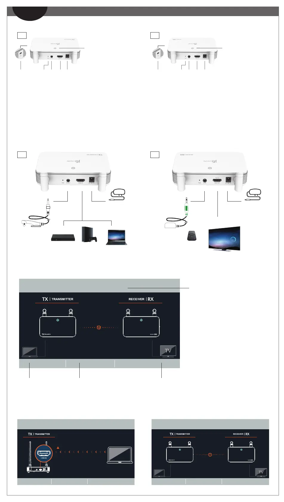 * ① 如果TX和RX连接失败, 您可以缩减TX和RX之间的距离。如果仍有问题, 请联系j5create客户服务。