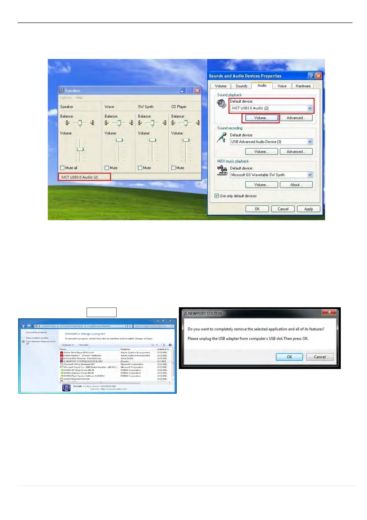 ※ Unplug the USB Cable of the ULTRA STATION before uninstalling the driver