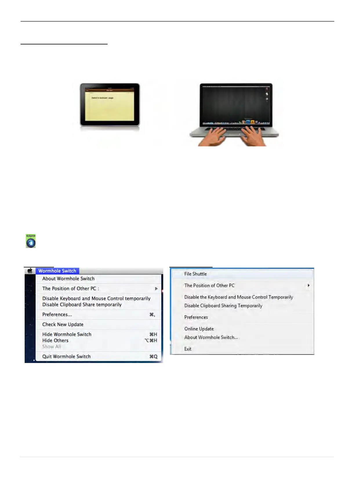 an iPad via the Wormhole Switch and switch the PC’s keyboard to work on the iPad.
