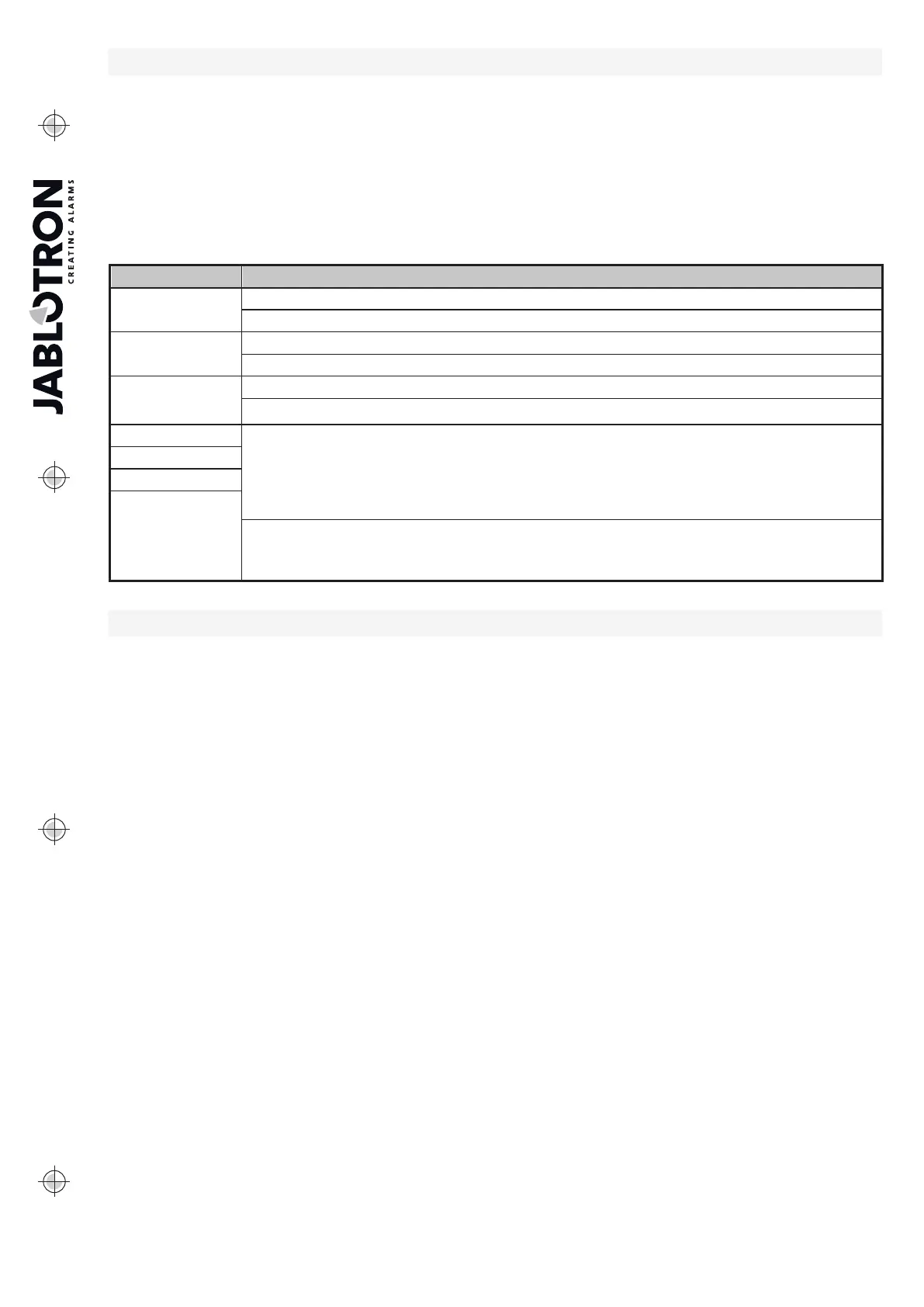 the detectors (with an antimasking function), problems with power (mains power or battery) or the back-up