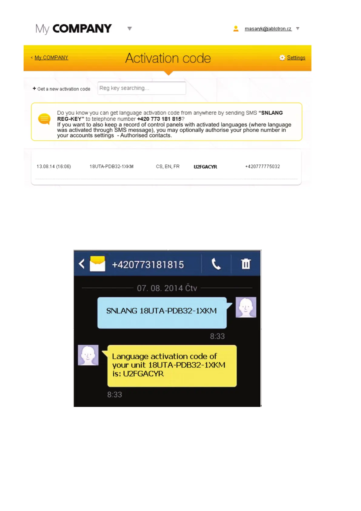 +420 773 181 815. An answer with the activation code will be sent shortly after that. The activation code