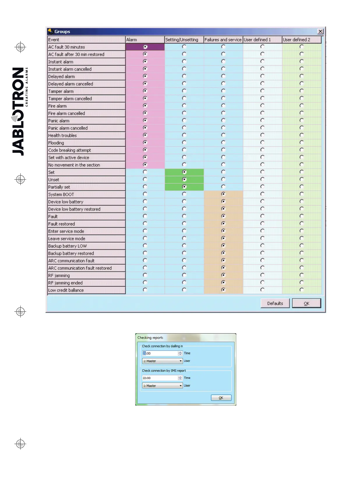 Check reports – this button (bottom bar) is used to set Check Ringing or Check SMS Report sent