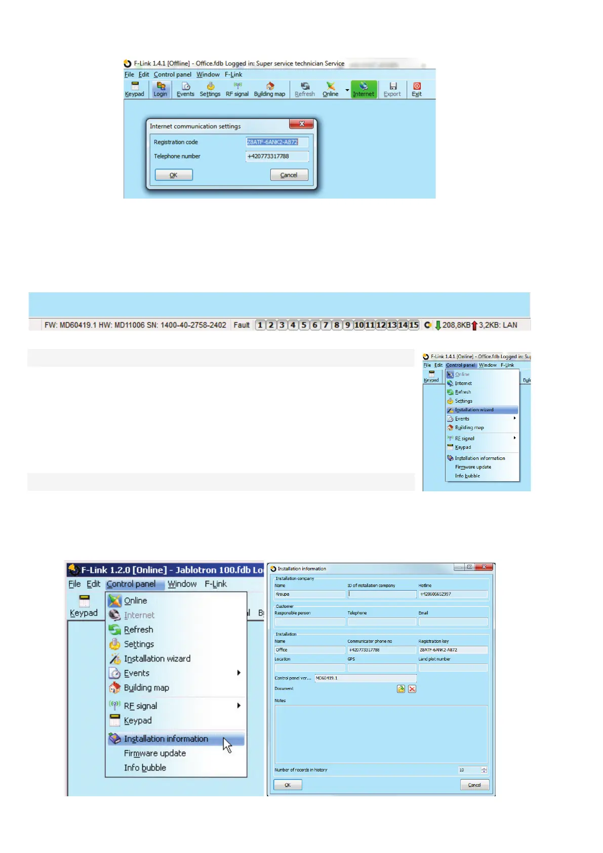 (offer, acceptance record, invoice etc.). In the ext. field the installation technician may fill in notes