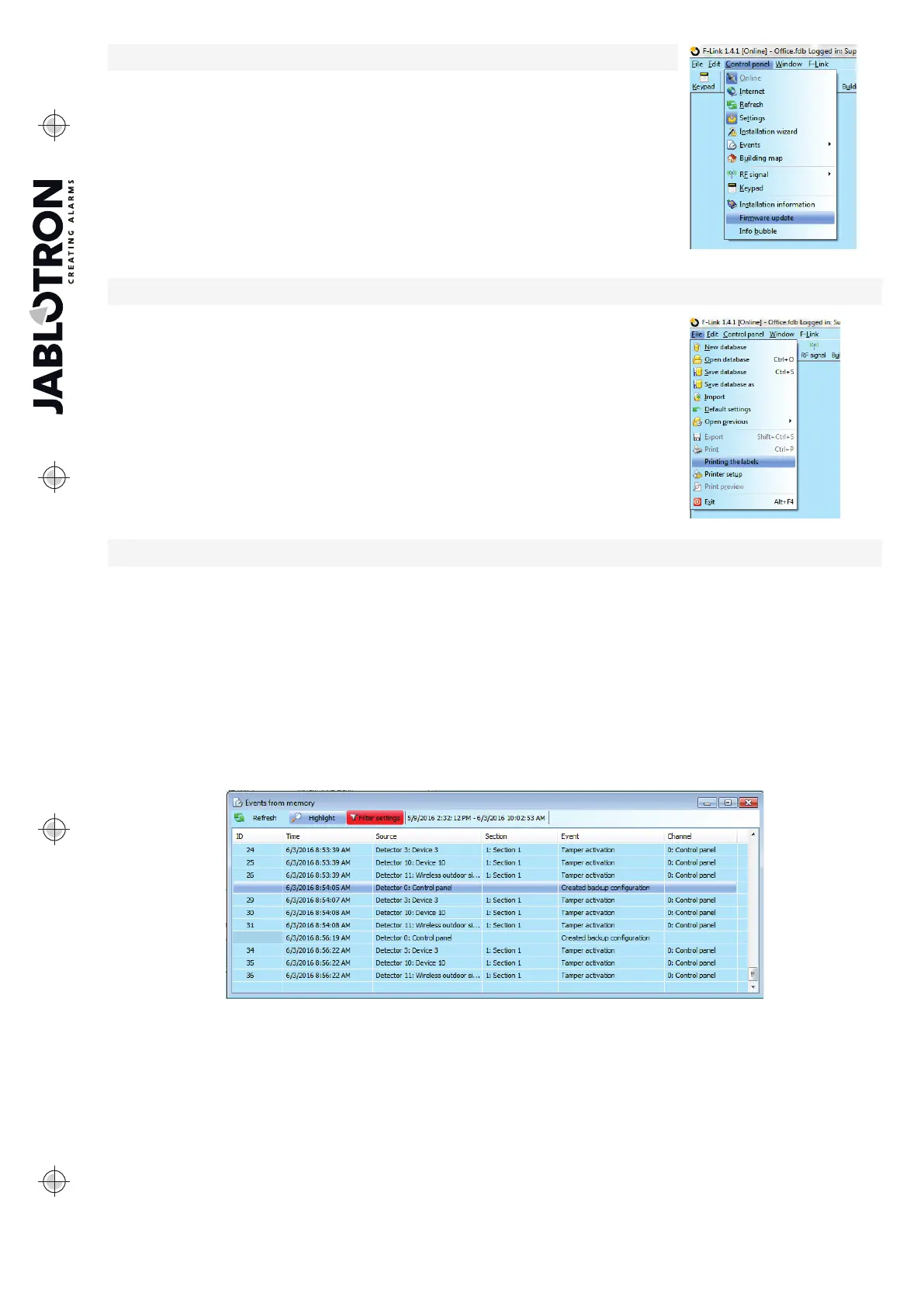 The control panel saves the settings of all devices with changes of their programming to the SD card.