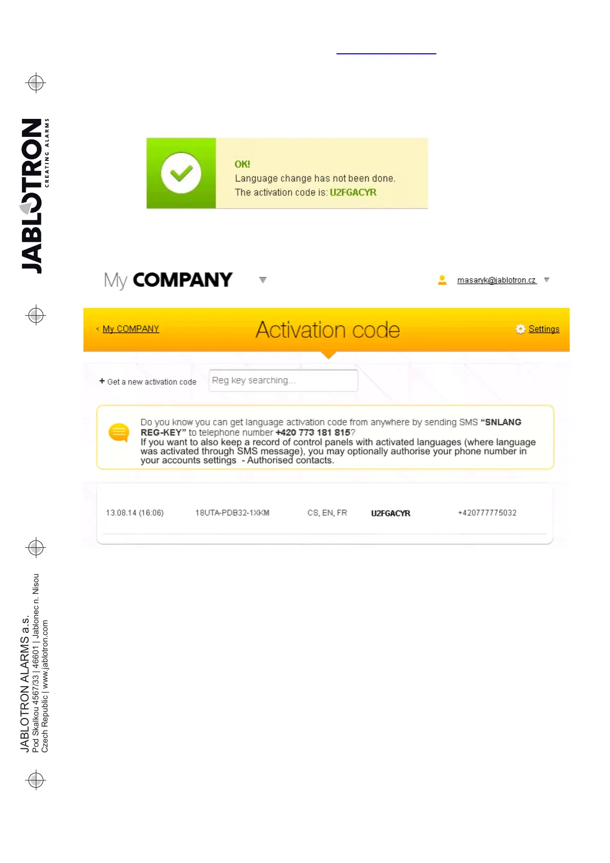 a. Login to the MyJABLOTRON web service www.myjablotron.com