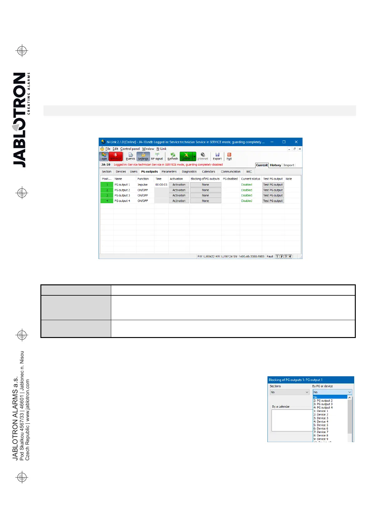 PG Disable – possibility to block a PG output. Disabling (blocking) of an output is indicated by a red dot.