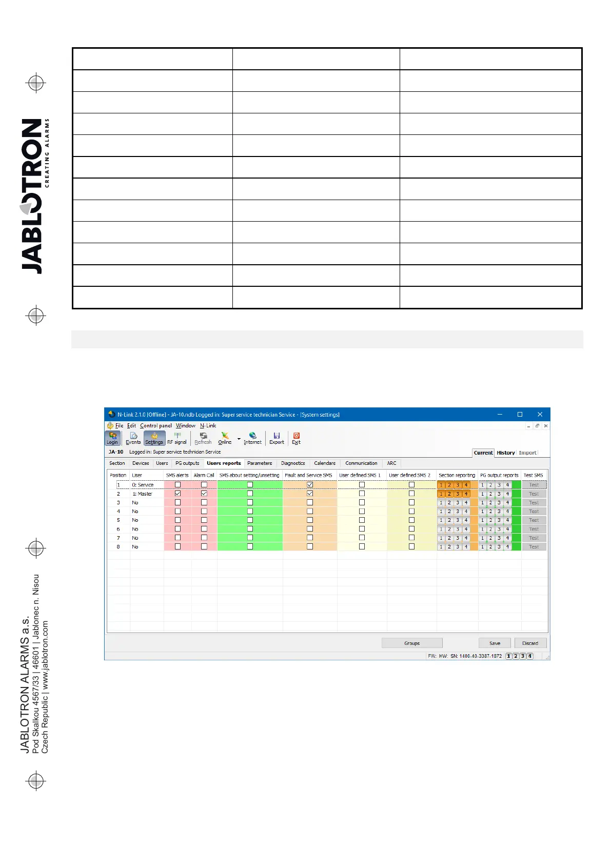 SMS alerts – group of selectable alarm reports in the case of which a textual report is sent about an alarm event in