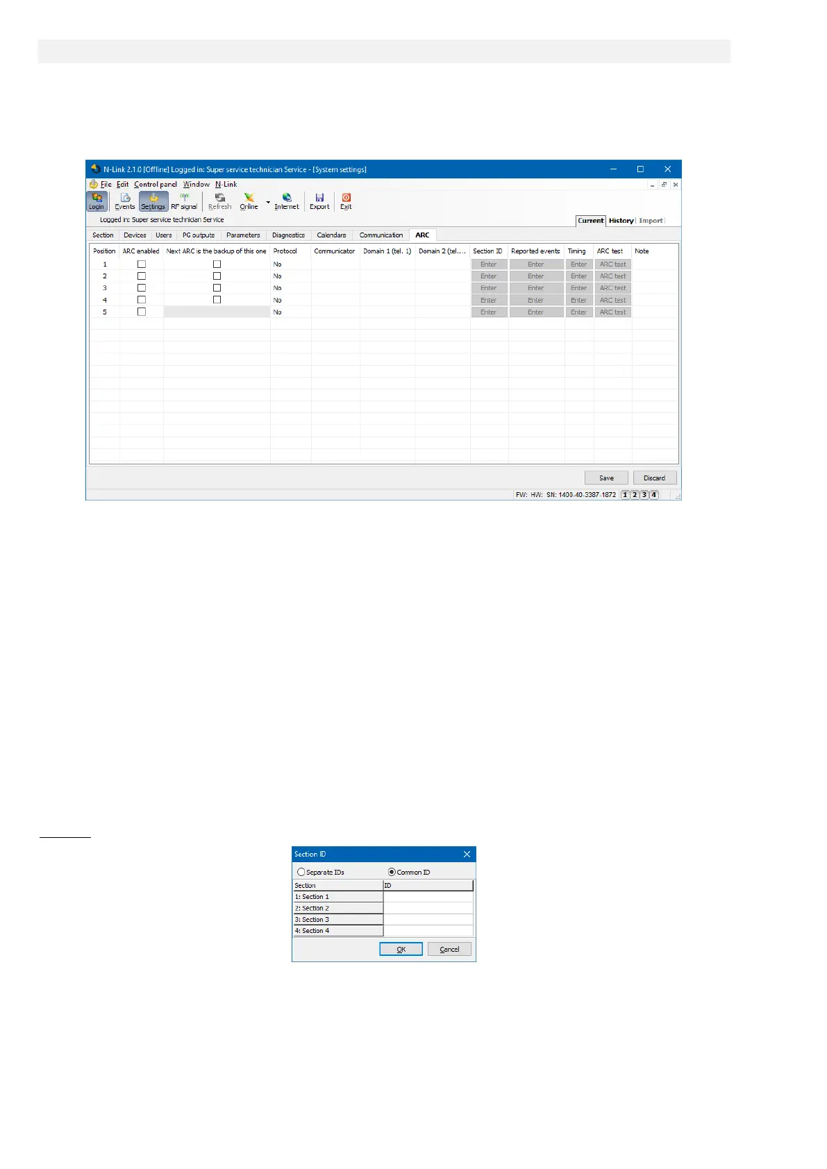 Section ID – setting of the building identification (common for the whole building or individually for sections).