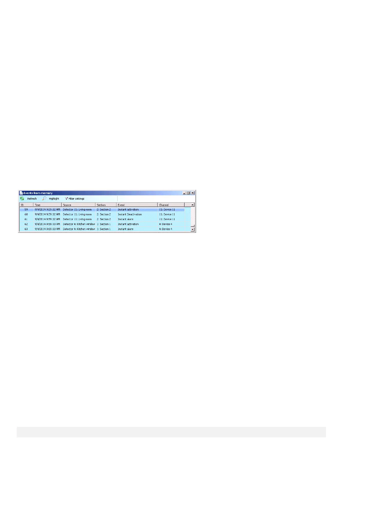Event history – the system records occurring events in its memory. The contents of the memory can be viewed
