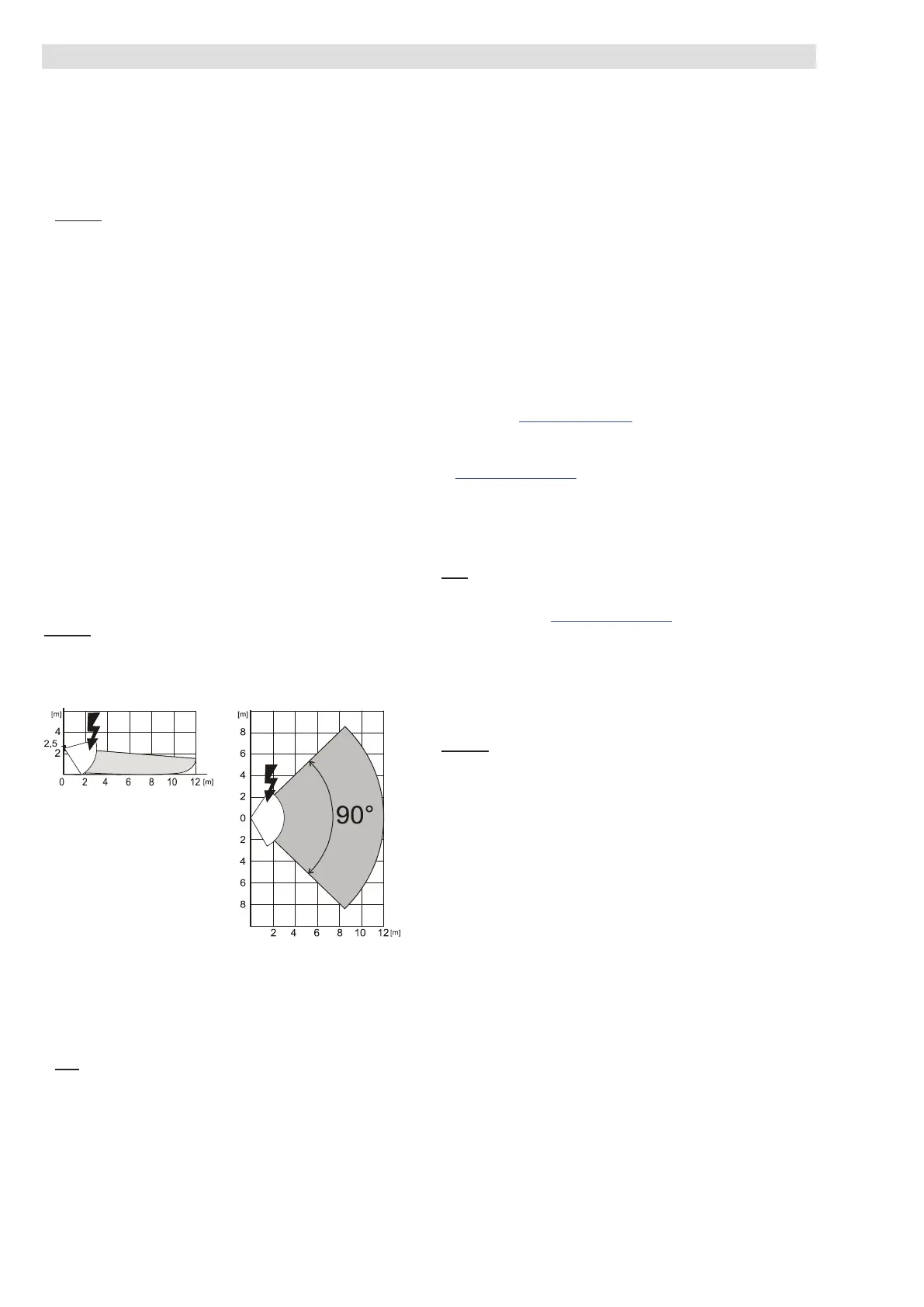 PIR detector has a 90°/12 m coverage – see picture below.