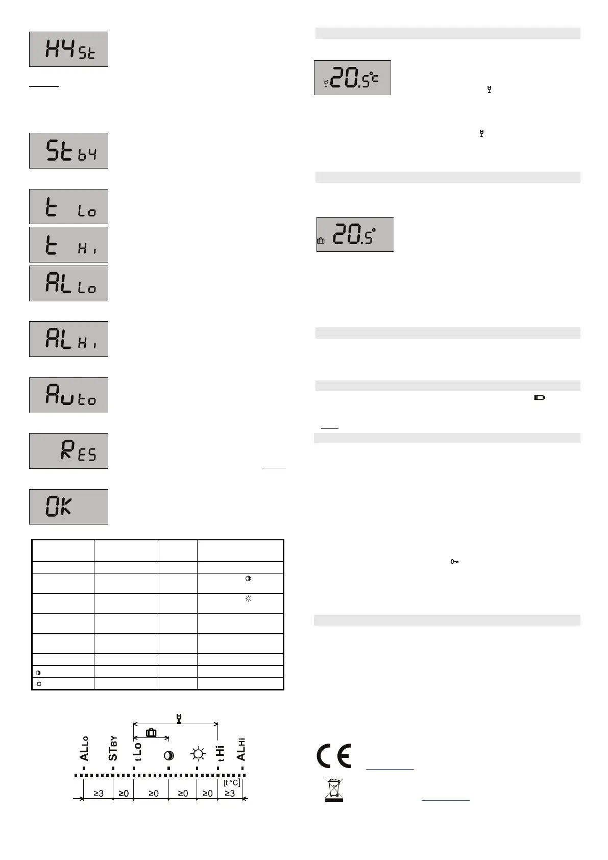 thermostat LCD display. The temperature can be pre-set in the tLo – tHi range.