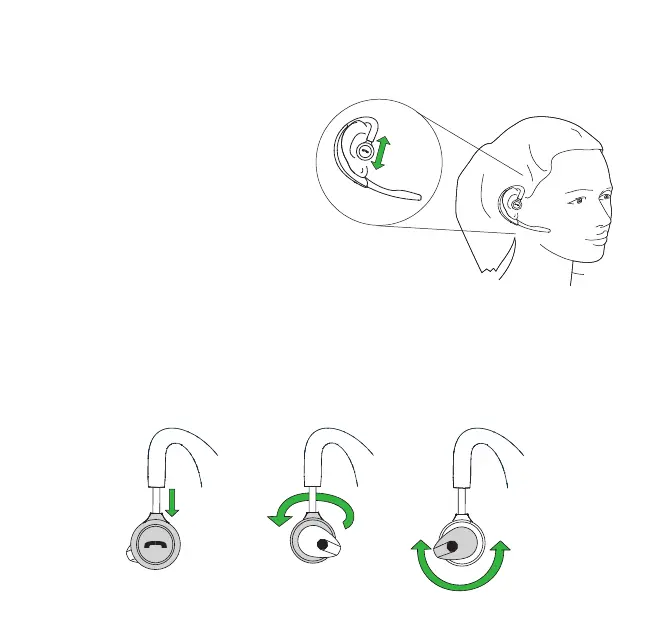 The headset can be worn on the left or right ear. To switch ear: