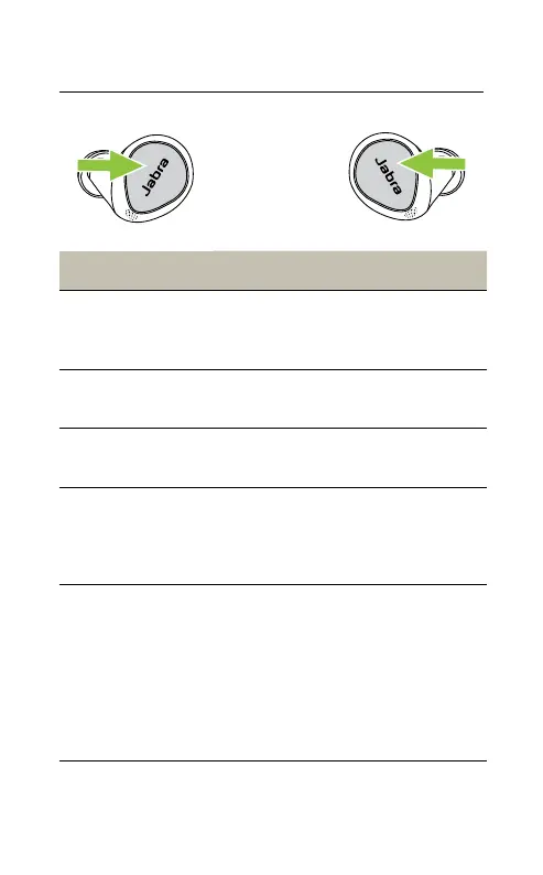 Left earbud Function Right earbud