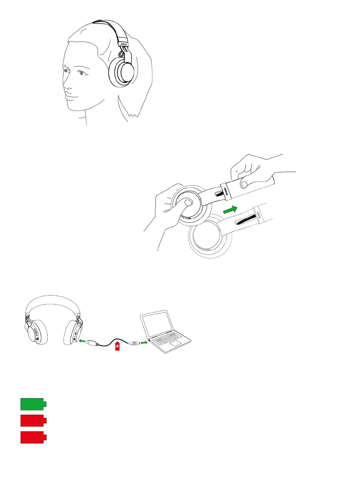 Jabra Move - How to Wear; Height Adjustment; How to Charge; Battery Status
