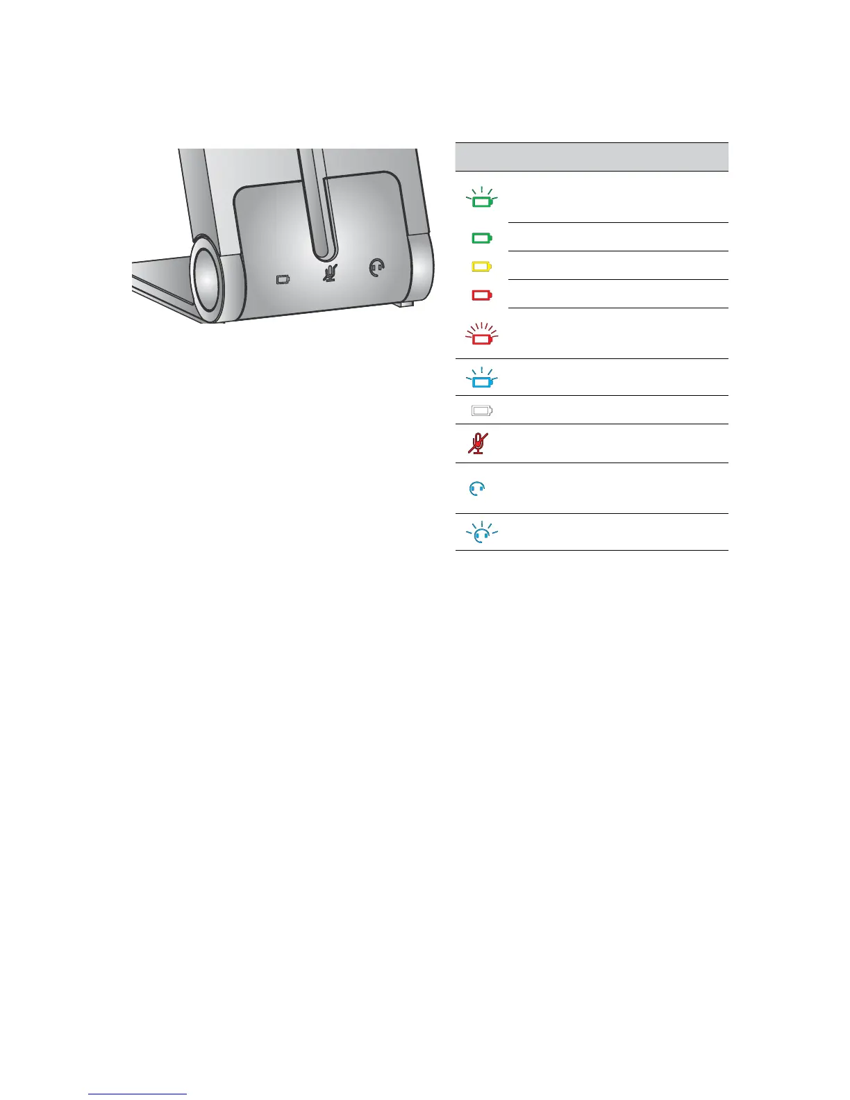The Jabra PRO 920 base has three LEDs to indicate battery, call status and
