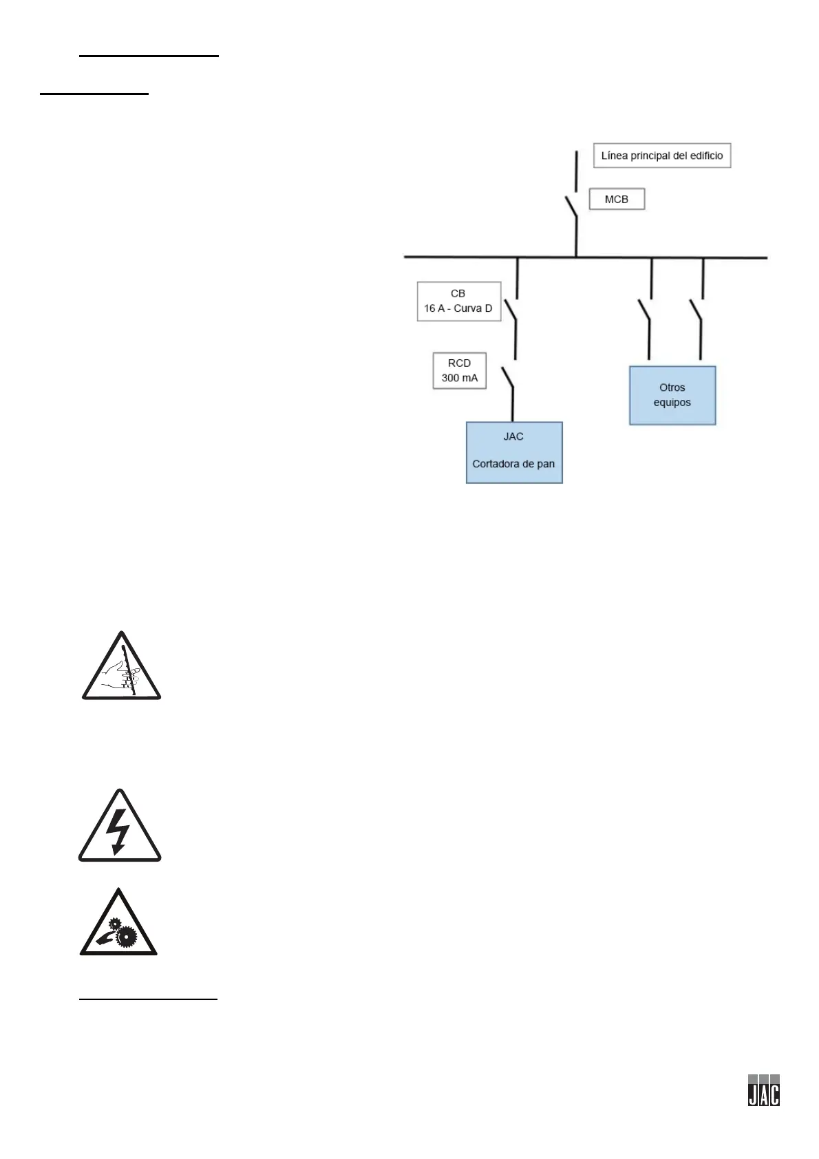 Es aconsejable proteger la instalación con un fusible y un disyuntor diferencial.
