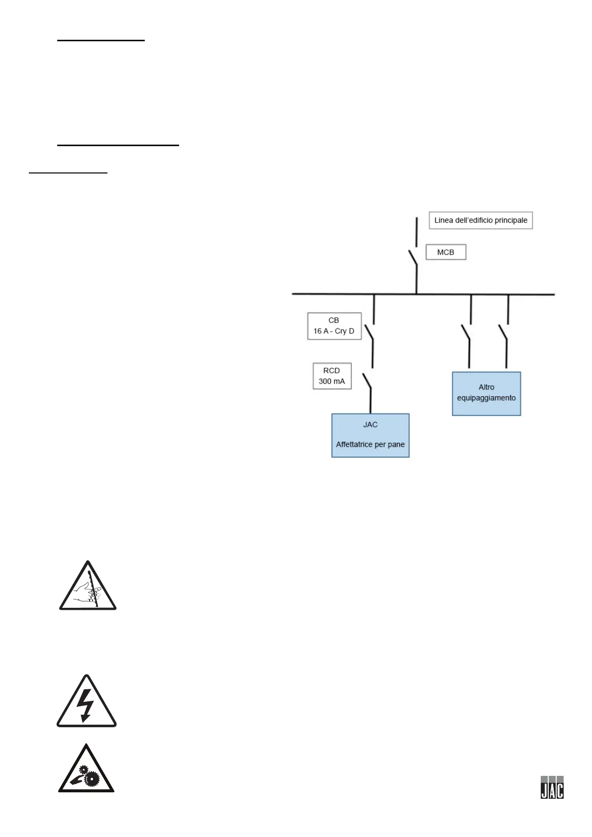 Si consiglia di proteggere l'impianto con un fusibile e un salvavita.