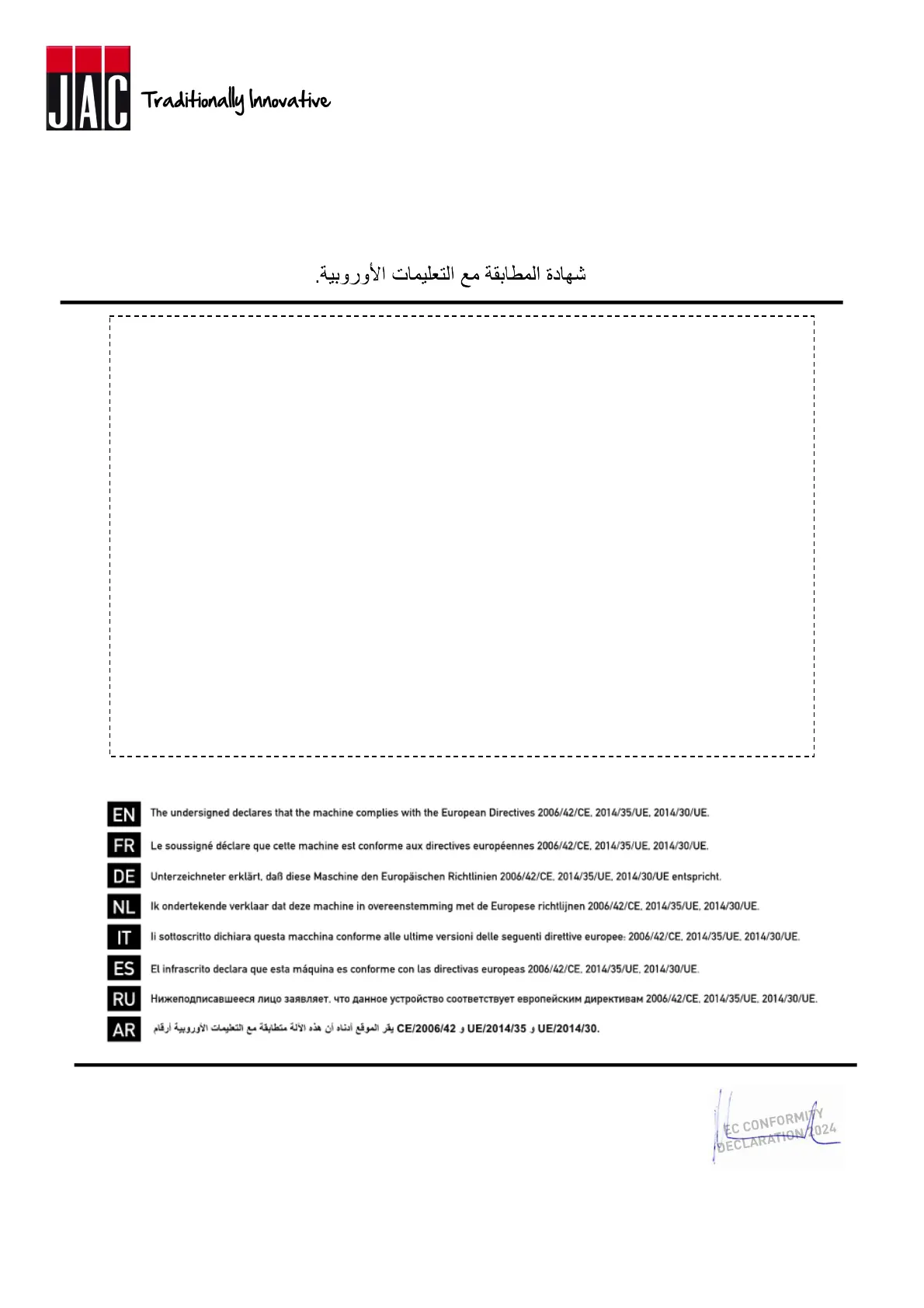 CONFORMITY DECLARATION TO THE EUROPEAN DIRECTIVES.