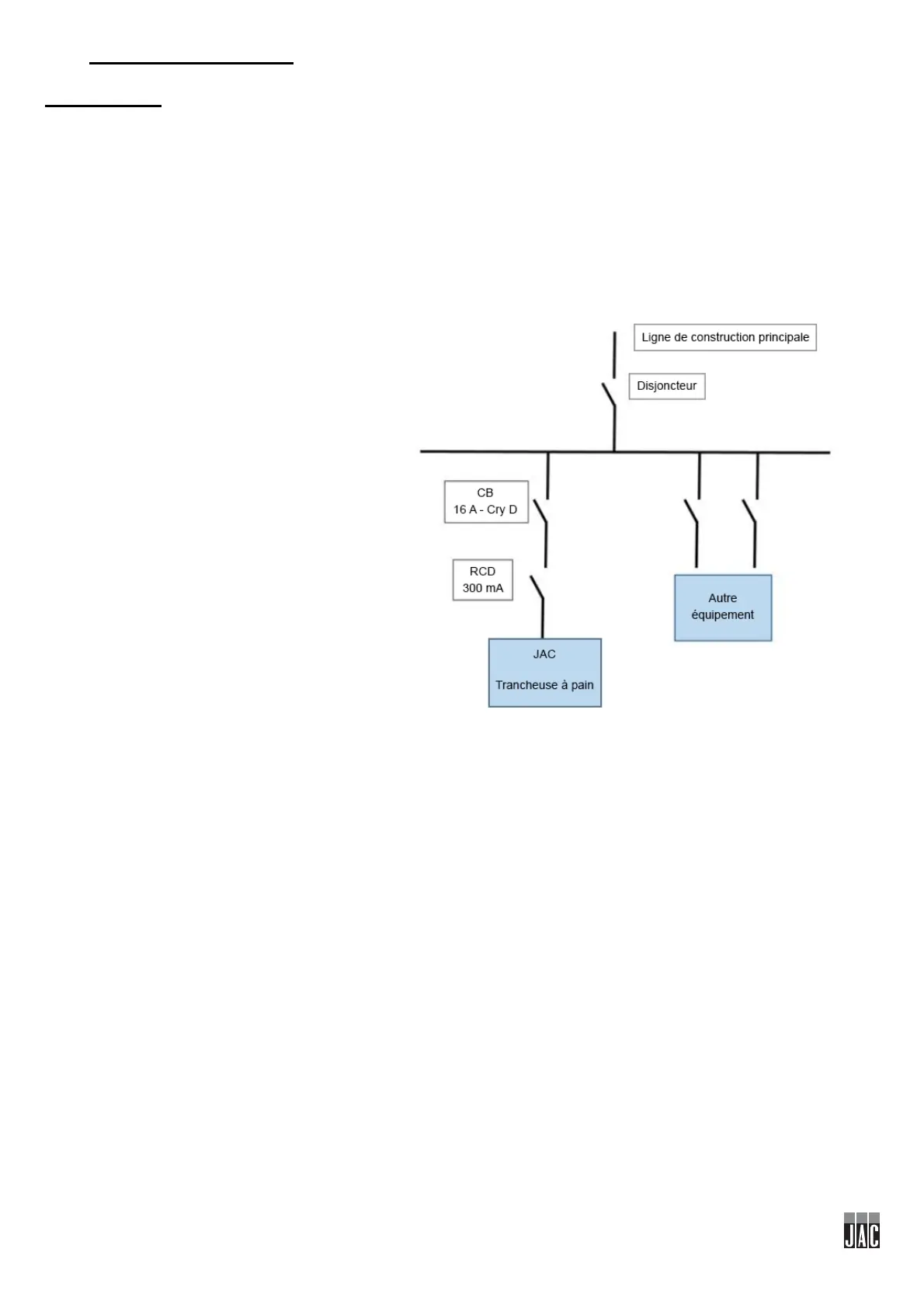 Le disjoncteur (CB) du circuit d’alimentation de la machine, doit être installé comme indiqué ci-