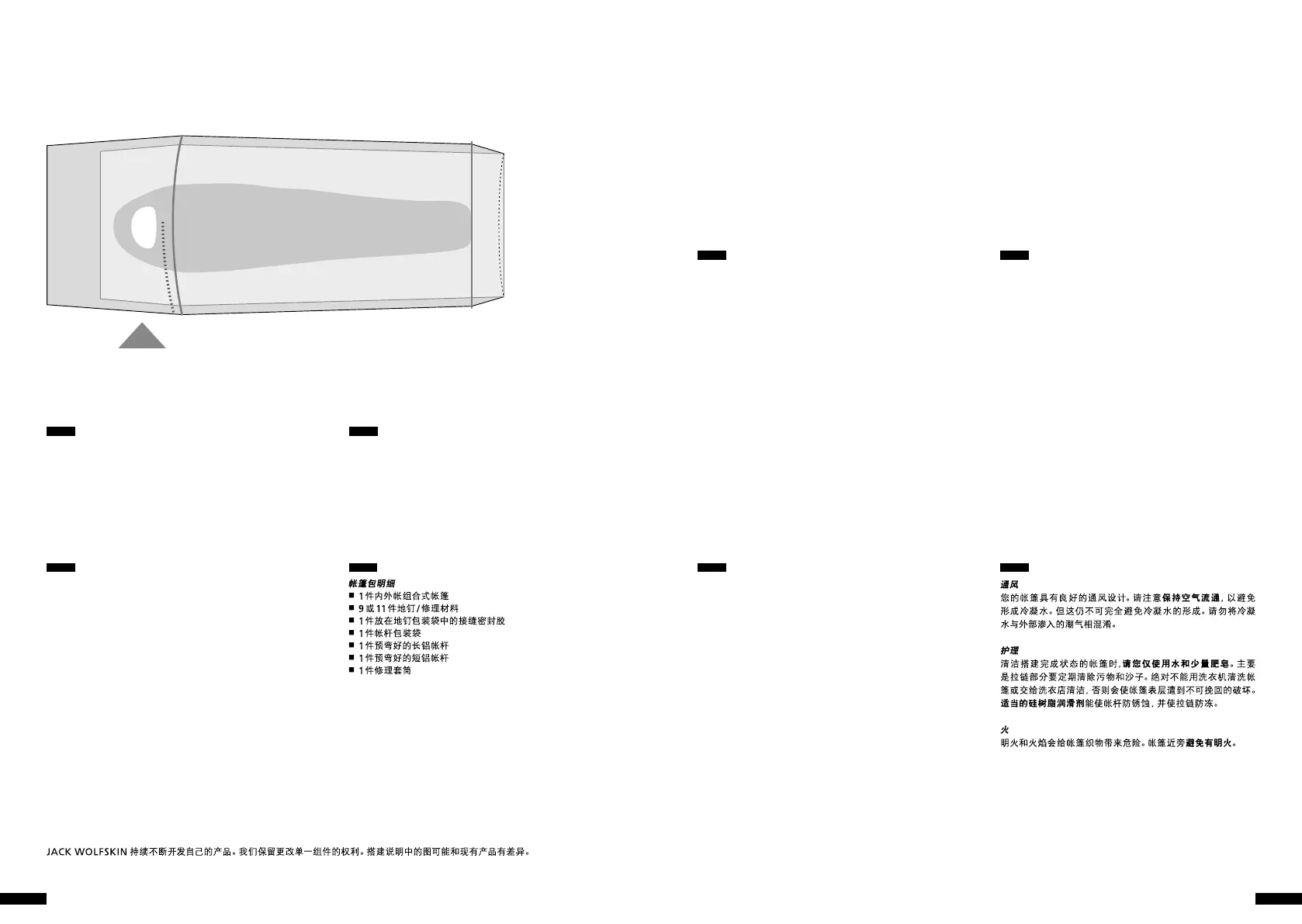 ger pour le tissu de Ia tente. Evitez les feux ouverts