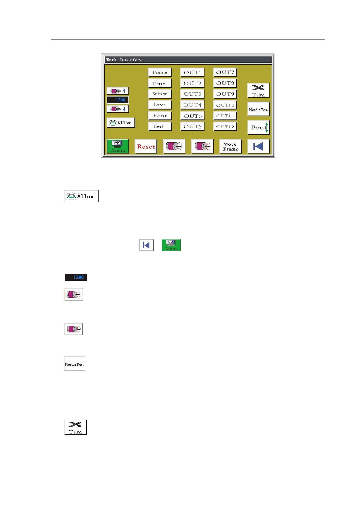 Trim key: press the key then the machine takes sewing once, to achieve full