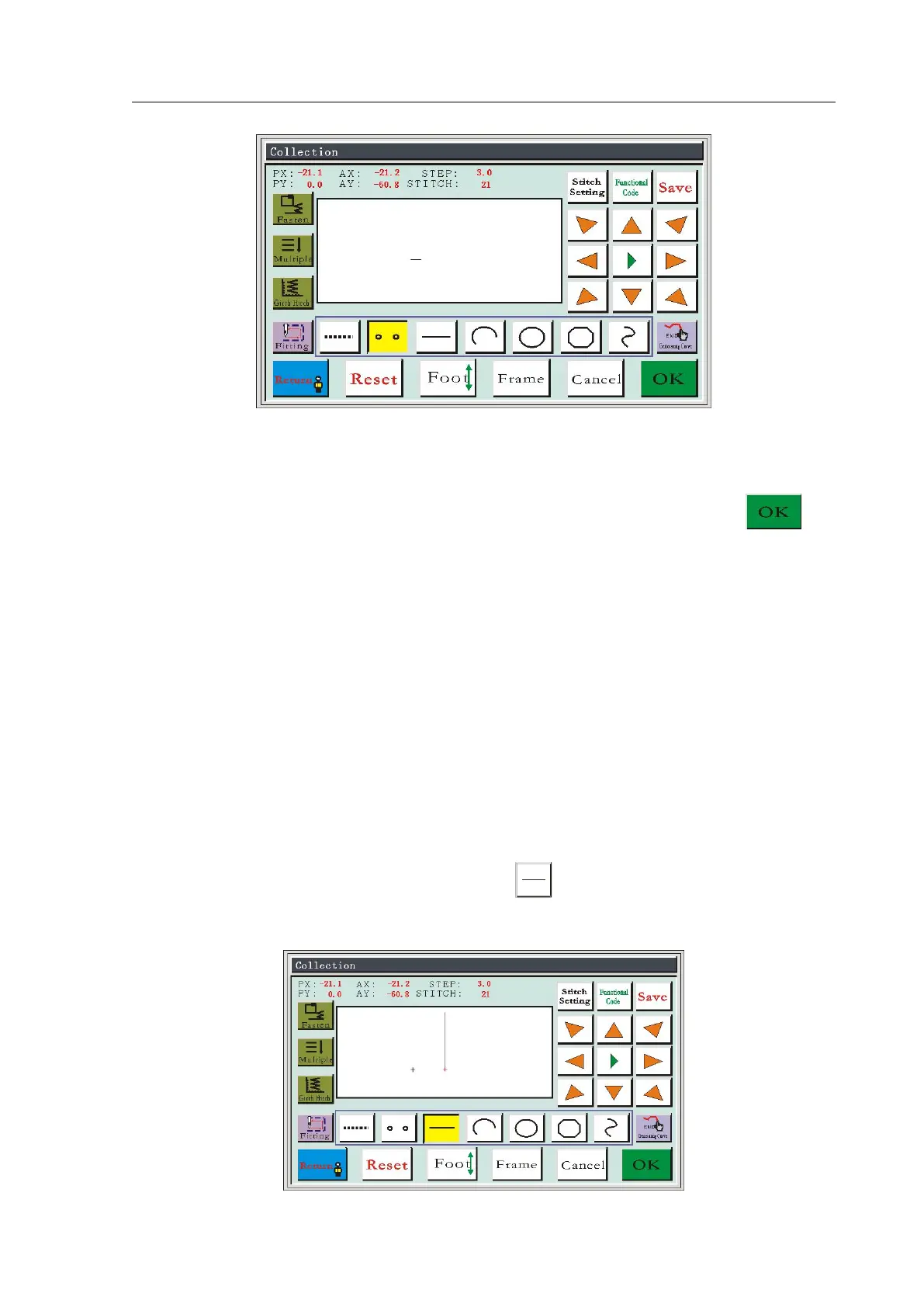 needle collection. Press keys to move the cursor to the needed position, press the key