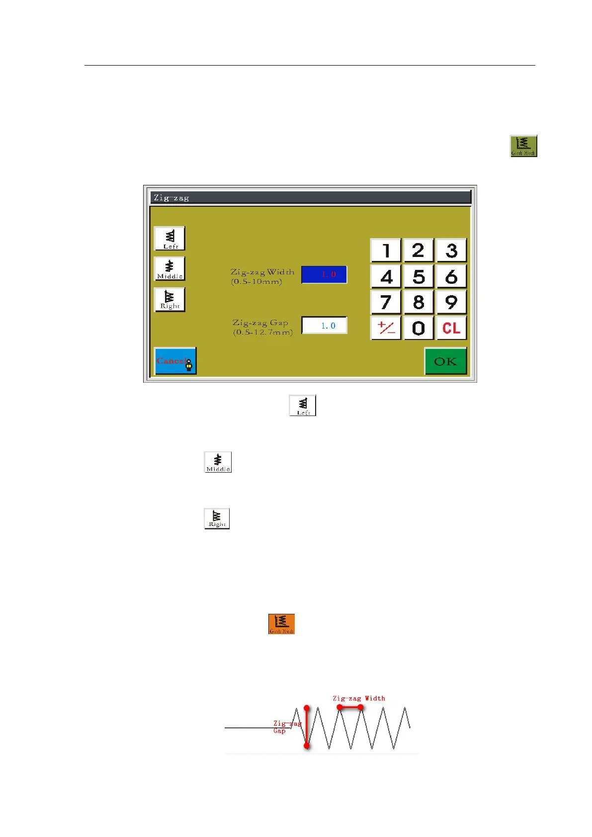 In file collection, if the current collection section needs zig-zag sewing, press the
