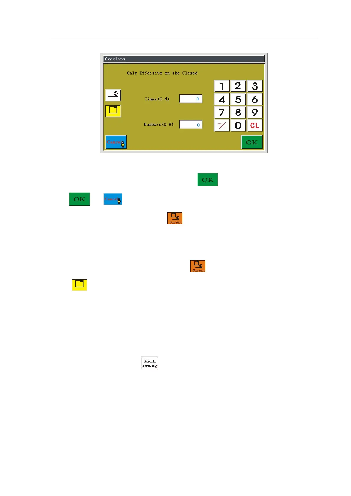 Set number of times and number of stitches to overlap according to the need, 0 means