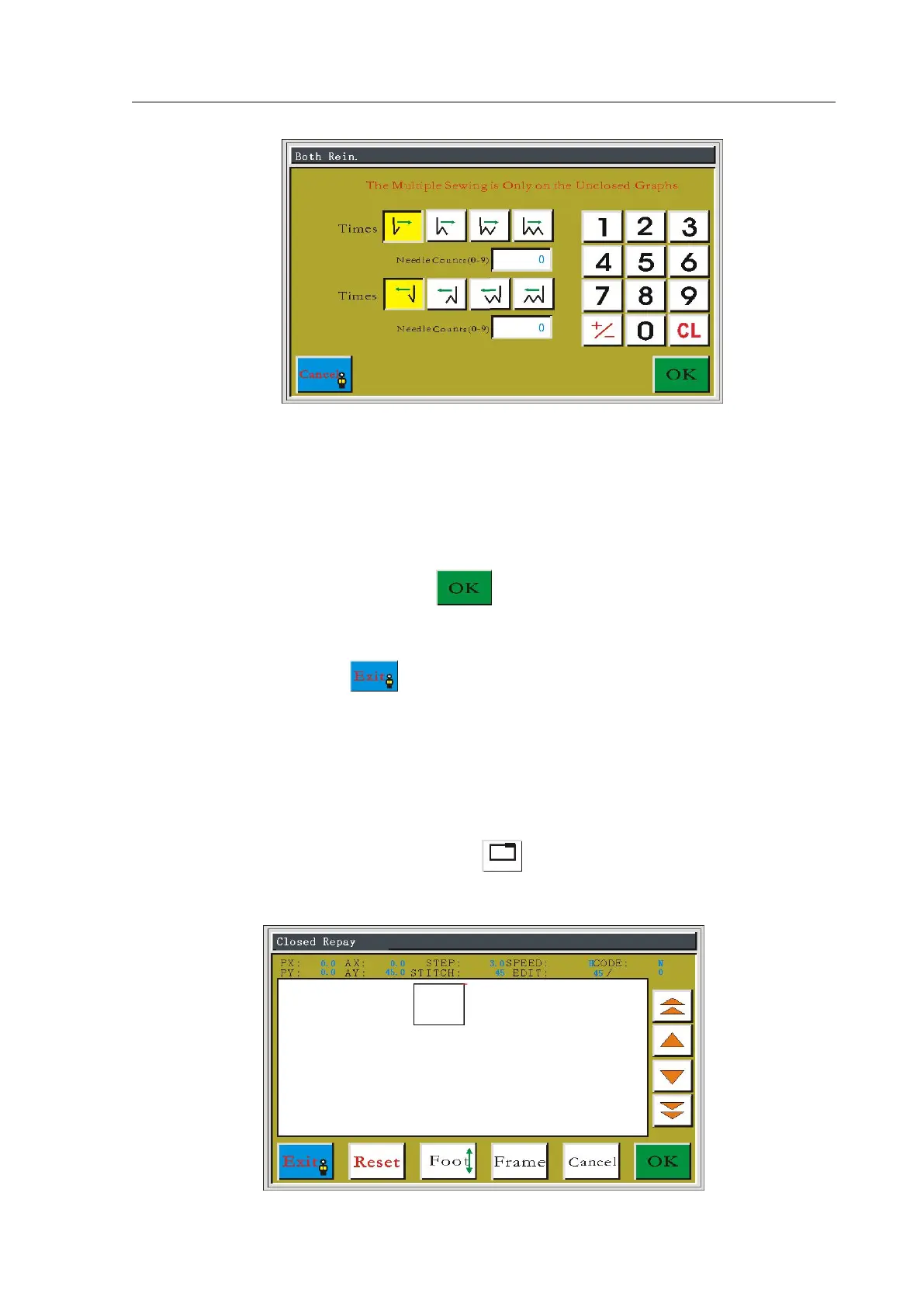 In the edit file main interface, press the button to enter select stitch interface, as